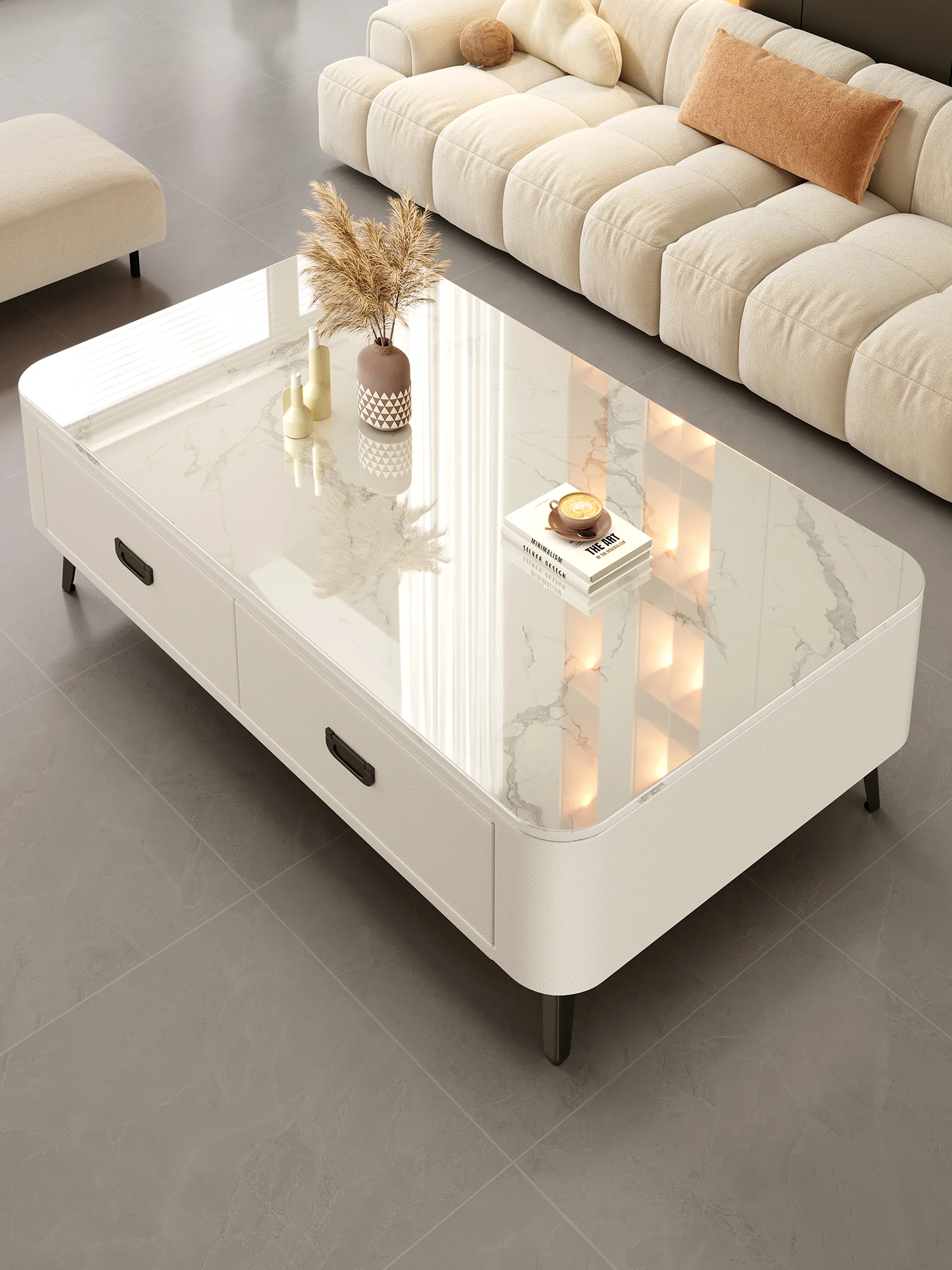 2024年新作!高級感あふれる岩板製リビングテーブル - シンプルでおしゃれなミニサイズ、ネットで話題の小型住宅向けデザイン!おしゃれな空間を演出する完璧なアイテム!