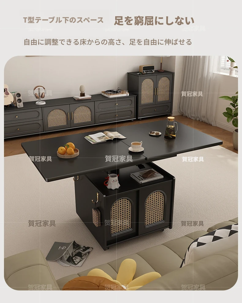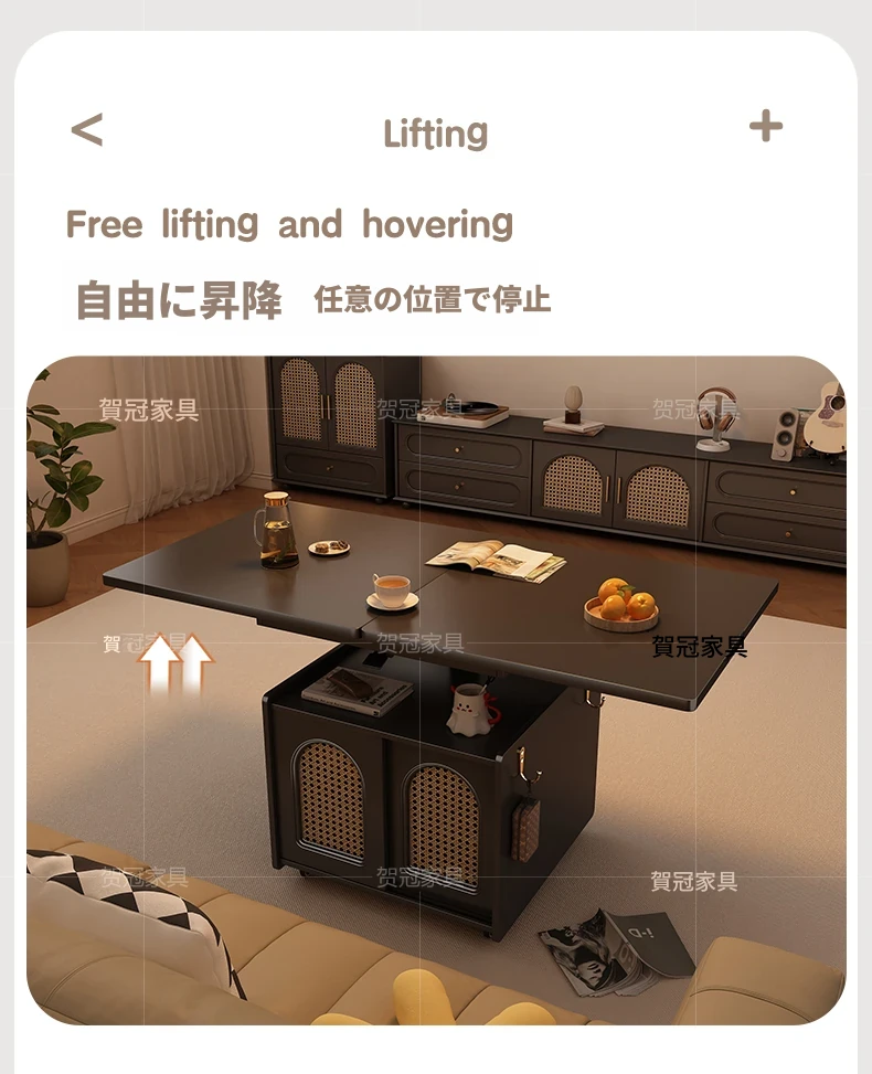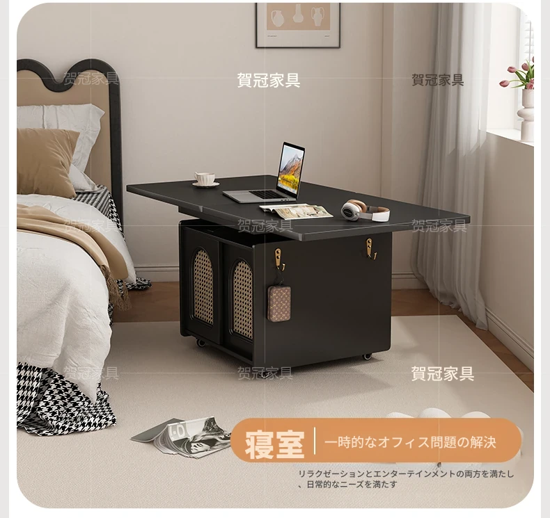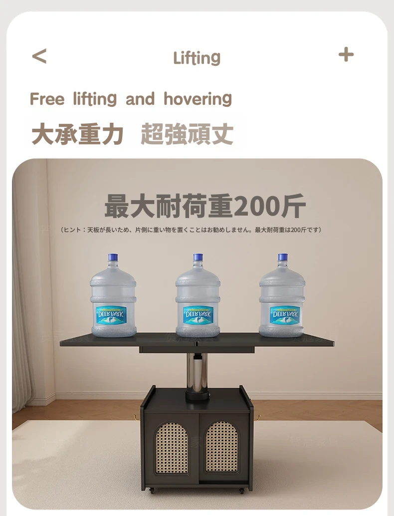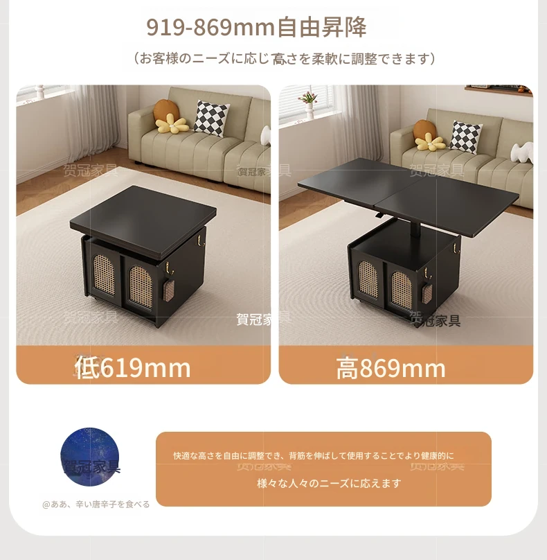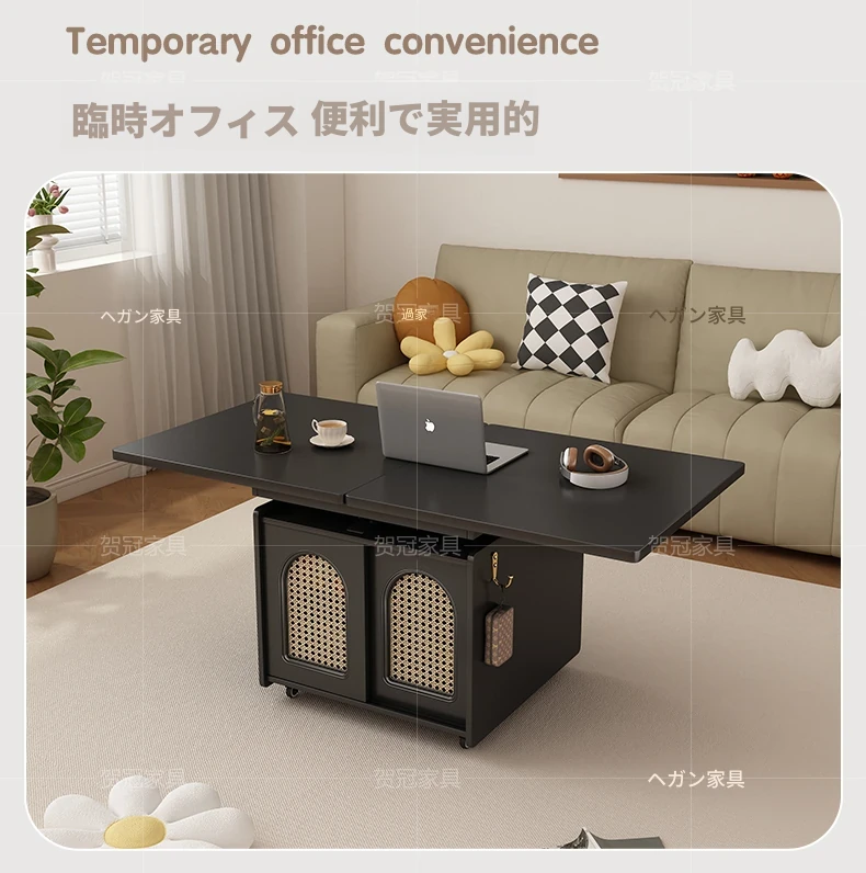 多機能昇降式コーヒーテーブル&サイドキャビネット - 移動式・折りたたみ対応のコンパクトデザイン!小型住居にも最適の長方形シンプルオフィステーブル。機能性とスタイルを両立させた、あなただけのリビング空間を演出します!