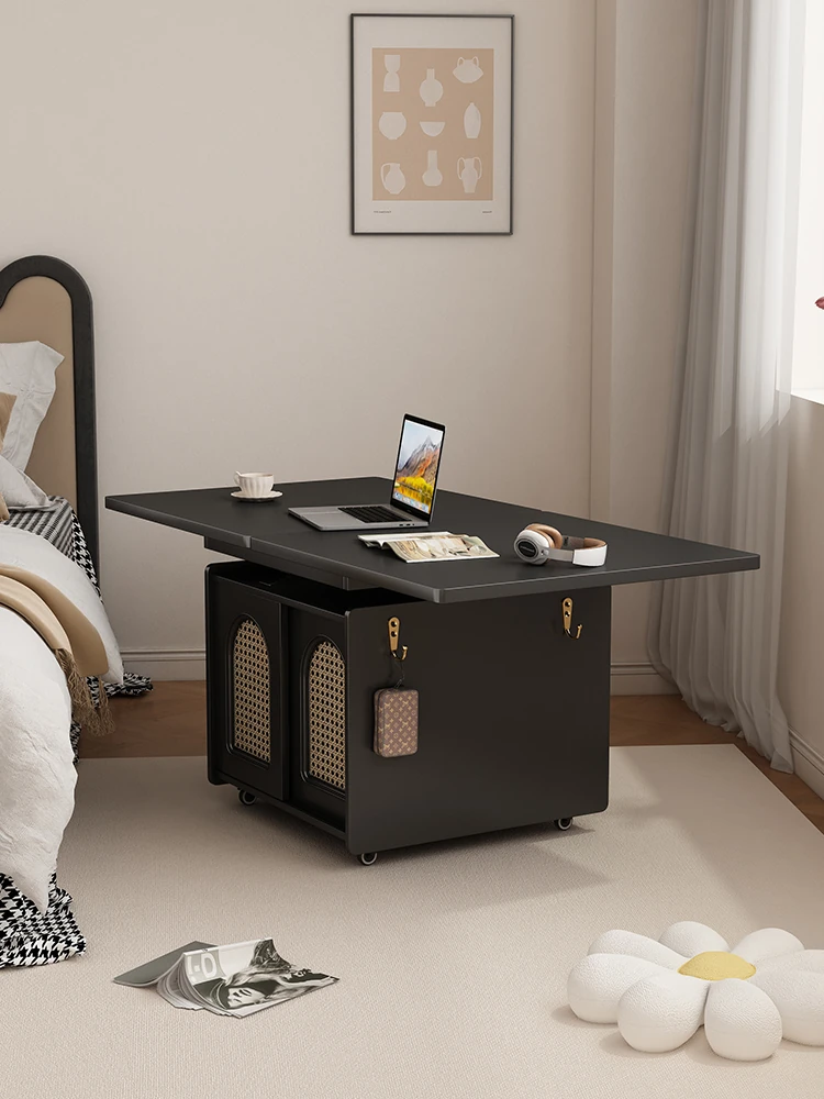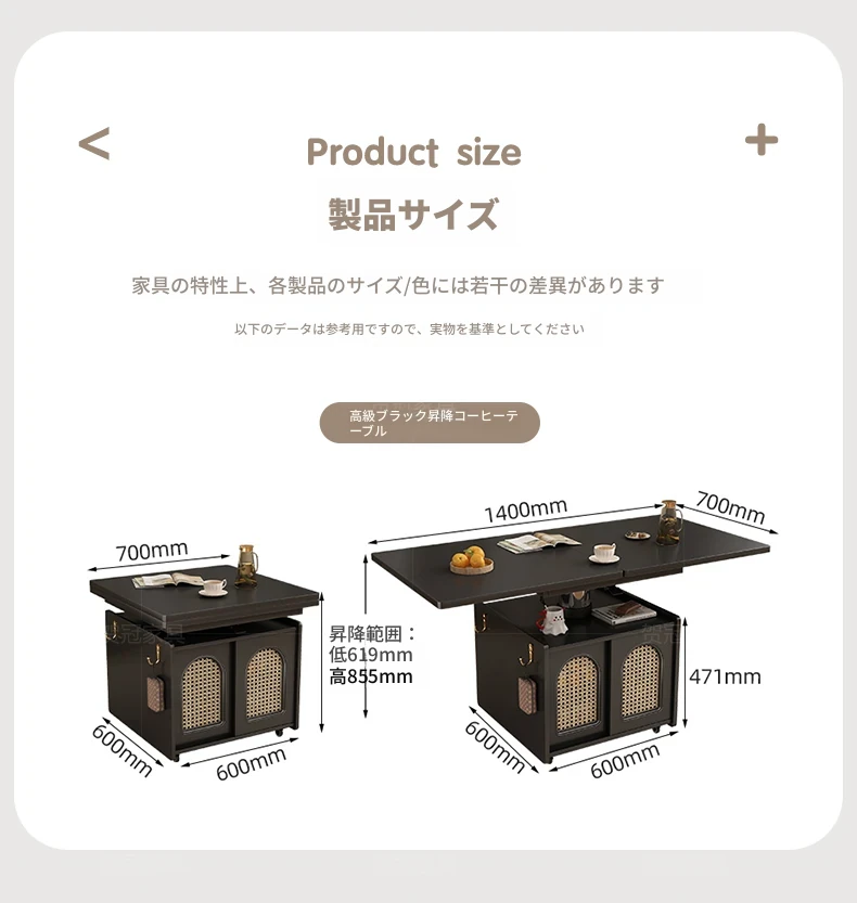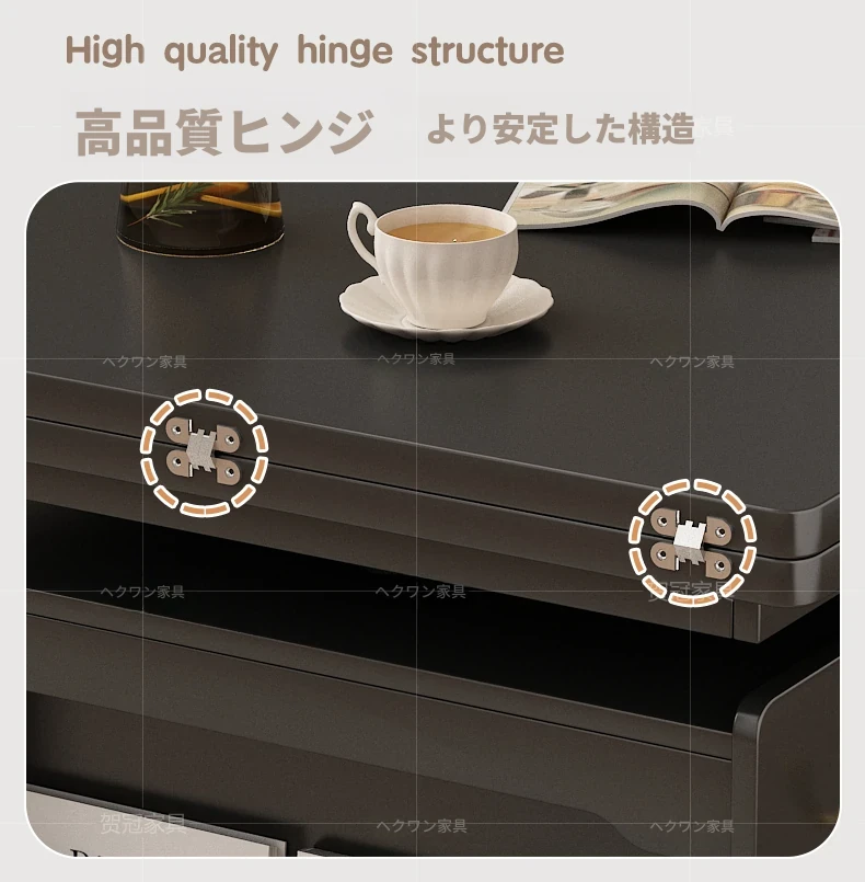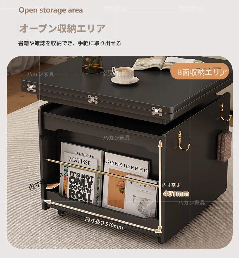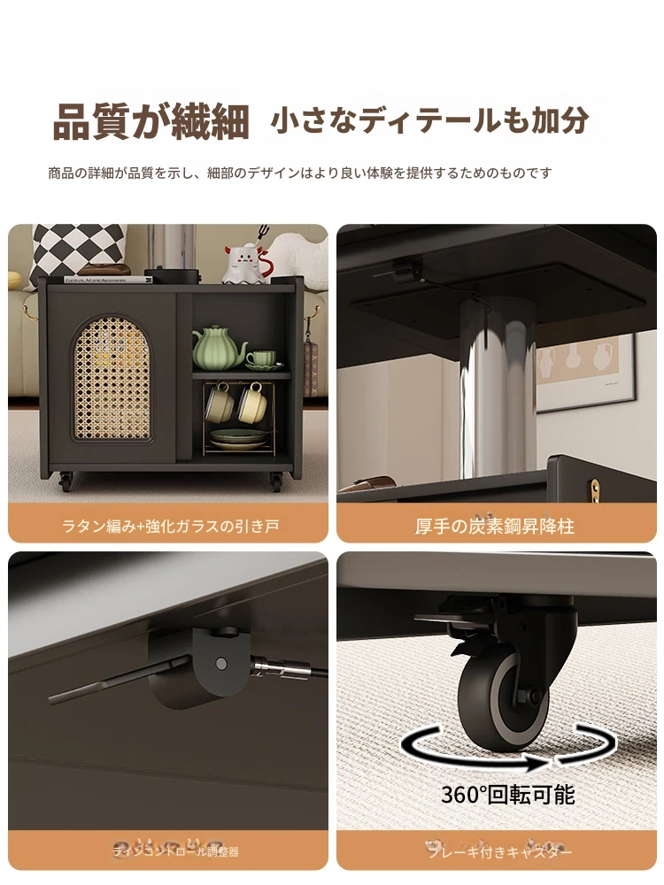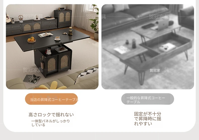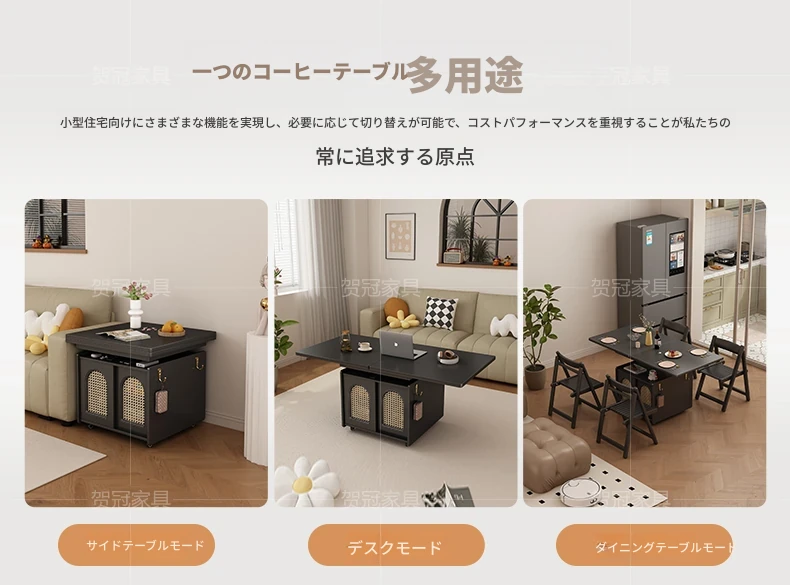 多機能昇降式コーヒーテーブル&サイドキャビネット - 移動式・折りたたみ対応のコンパクトデザイン!小型住居にも最適の長方形シンプルオフィステーブル。機能性とスタイルを両立させた、あなただけのリビング空間を演出します!