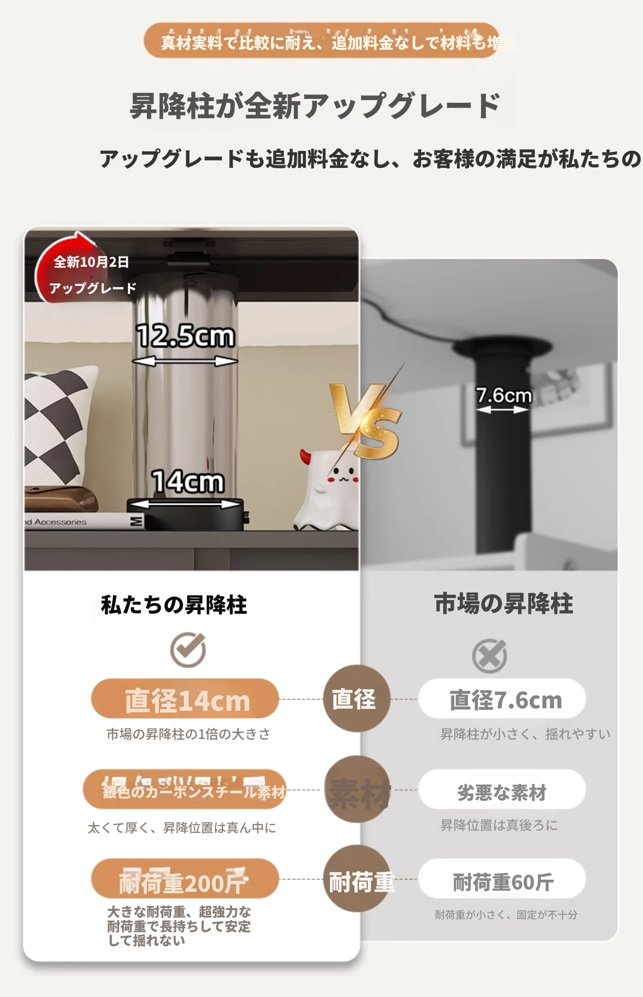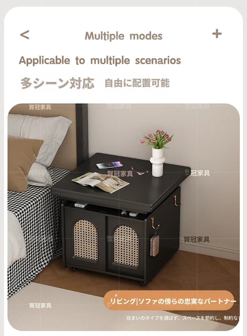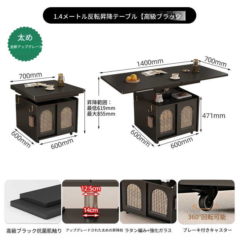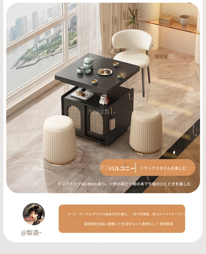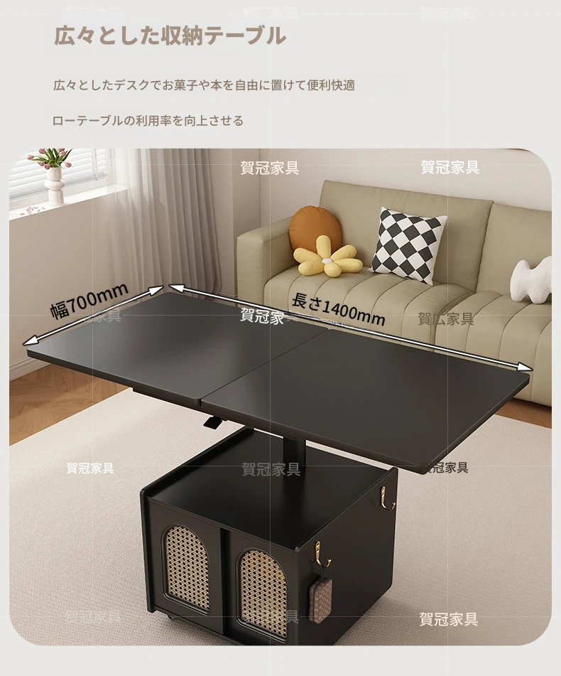 多機能昇降式コーヒーテーブル&サイドキャビネット - 移動式・折りたたみ対応のコンパクトデザイン!小型住居にも最適の長方形シンプルオフィステーブル。機能性とスタイルを両立させた、あなただけのリビング空間を演出します!