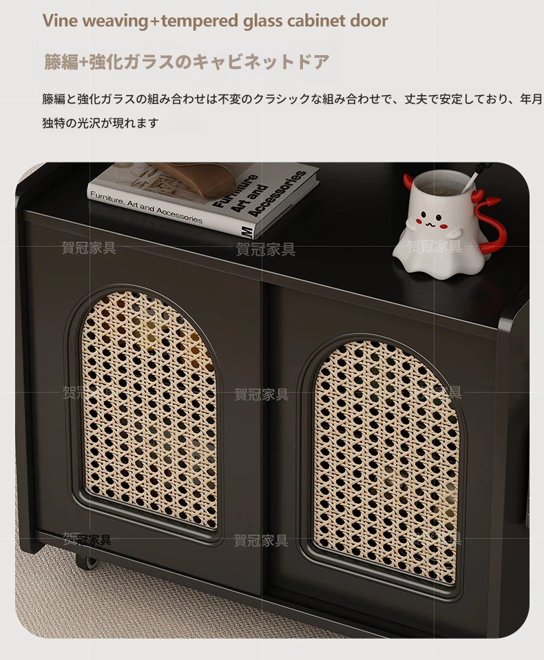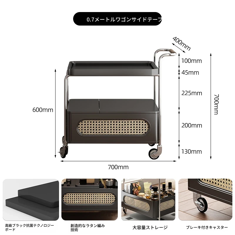 0.7メートル ラタン製小型キャリーサイドテーブル【ヴィンテージ黑】