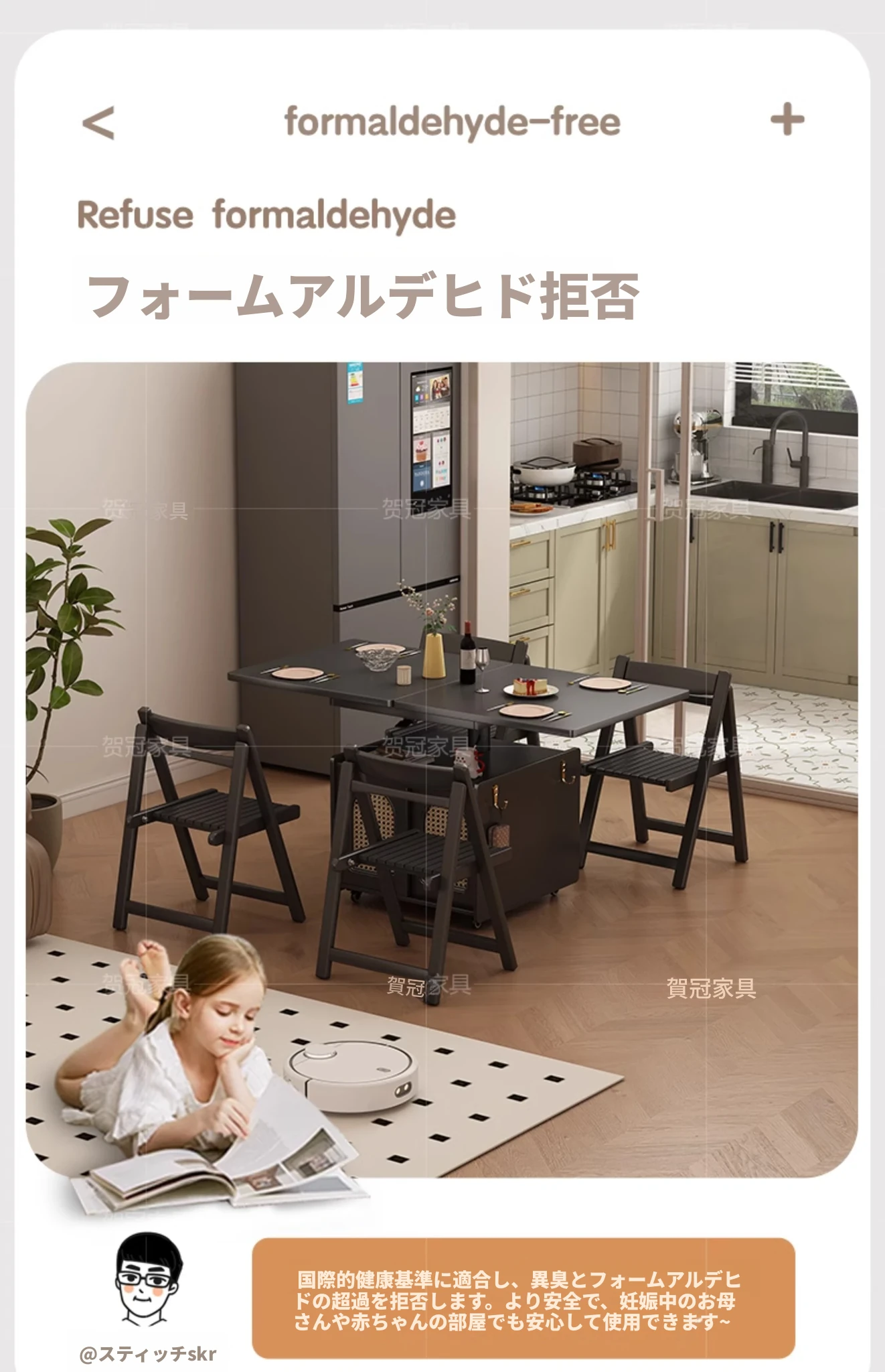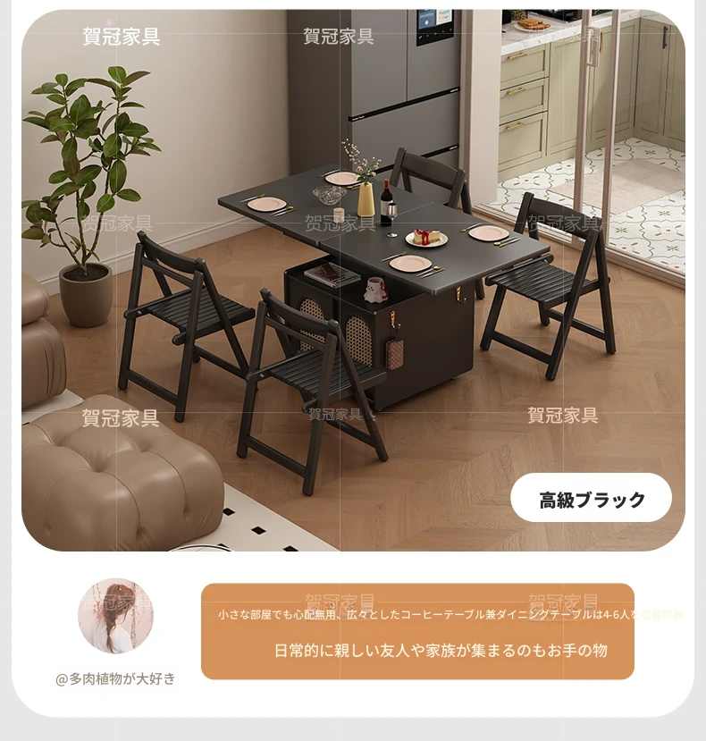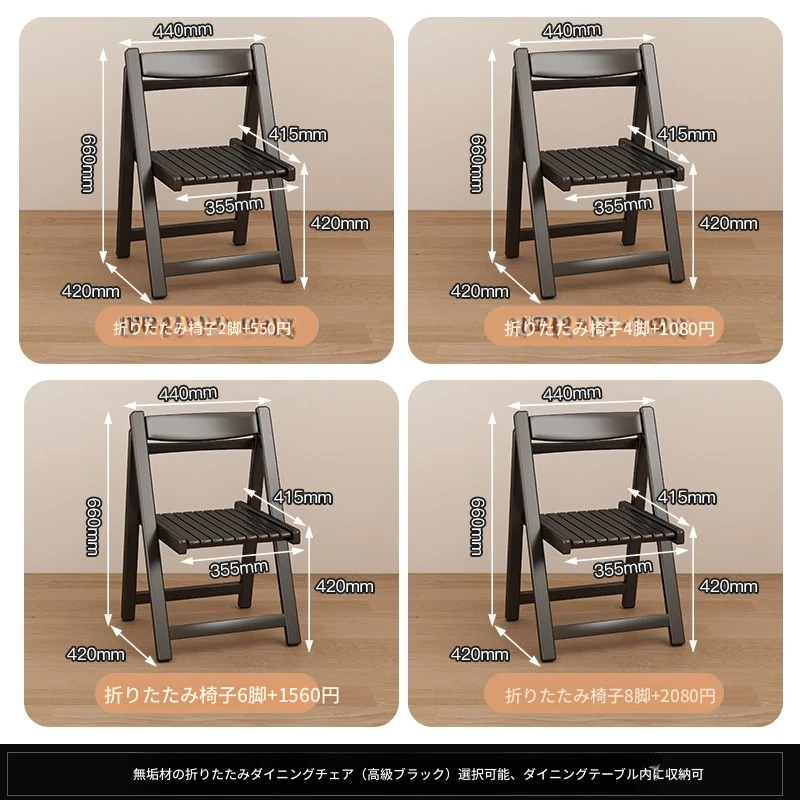 カスタマーサービスにお問い合わせください 選択可能なダイニングチェアの数量【無垢材折りたたみ + 高級黒】