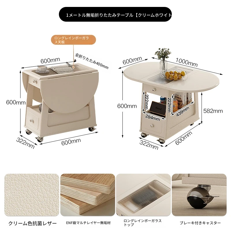 0.6メートル 移動式折りたたみサイドテーブル【5防菌肌感皮革】