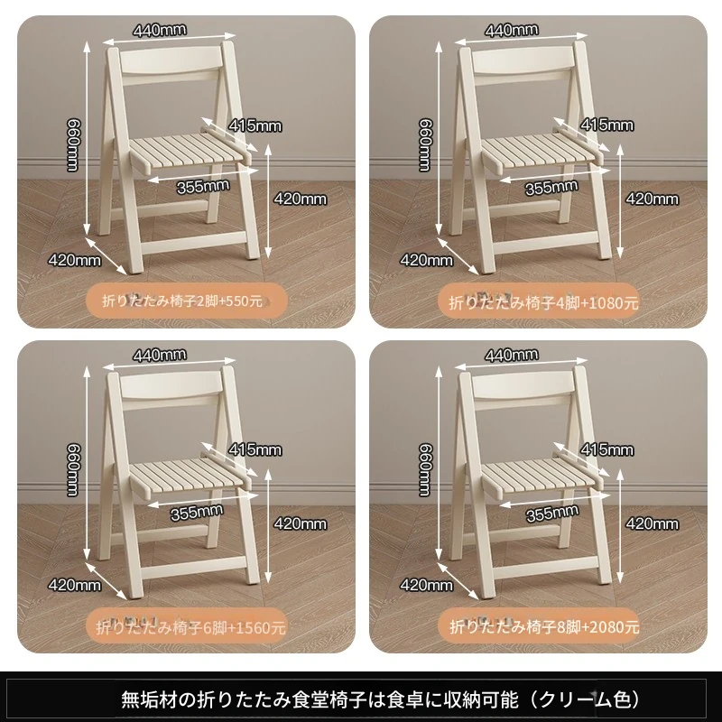 カスタマーサービスにお問い合わせください 選択可能なダイニングチェアの数量【無垢材折りたたみ + クリームホワイト】