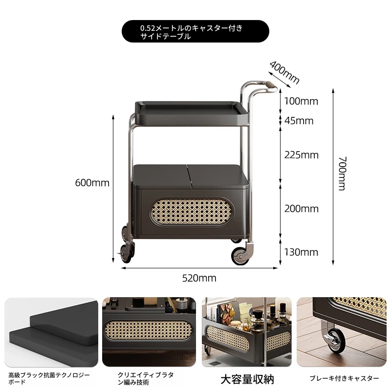 0.5メートル ラタン製小型キャリーサイドテーブル【ヴィンテージ黑】
