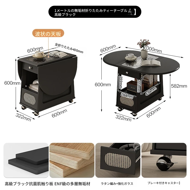 石板伸縮移動ティーテーブル【5防菌黒 + 自動給水の泡茶】