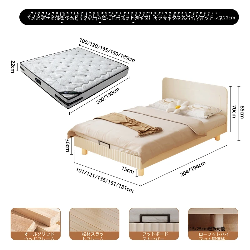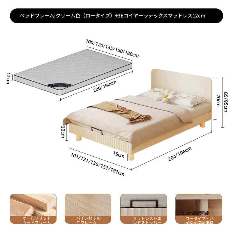 クリームスタイル | ローチェア【敷き詰め15CMパイン材ベッドボード】