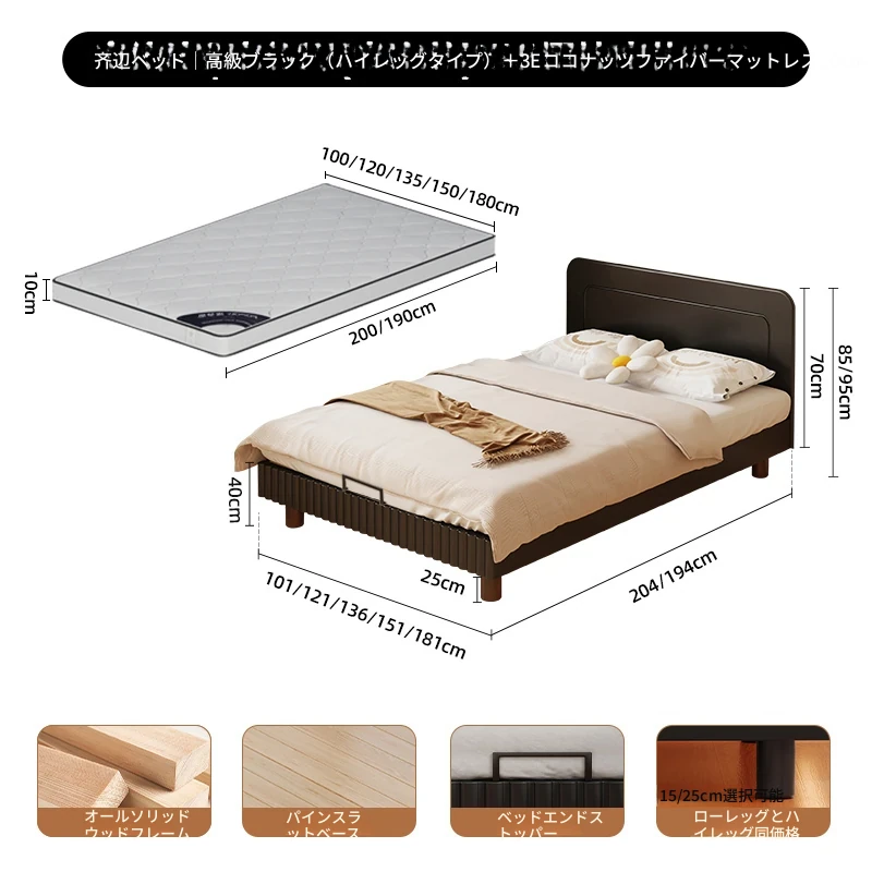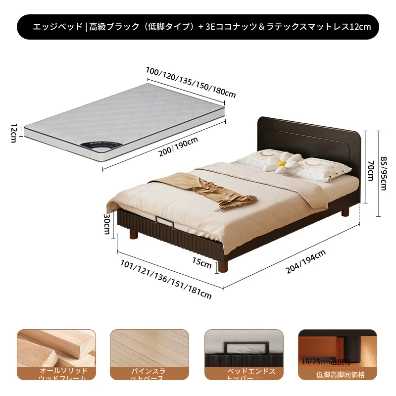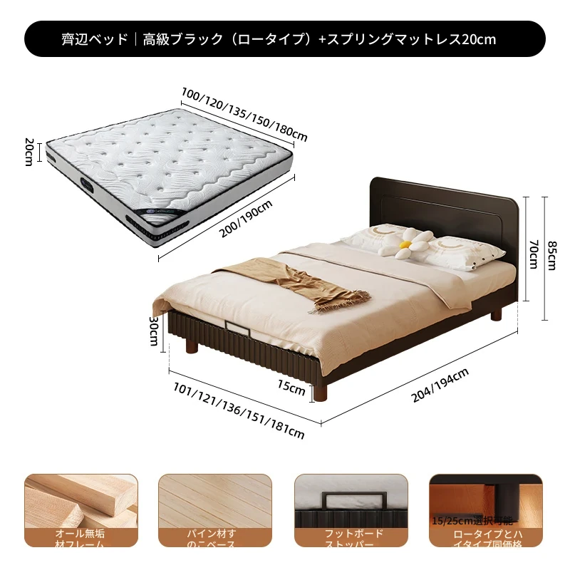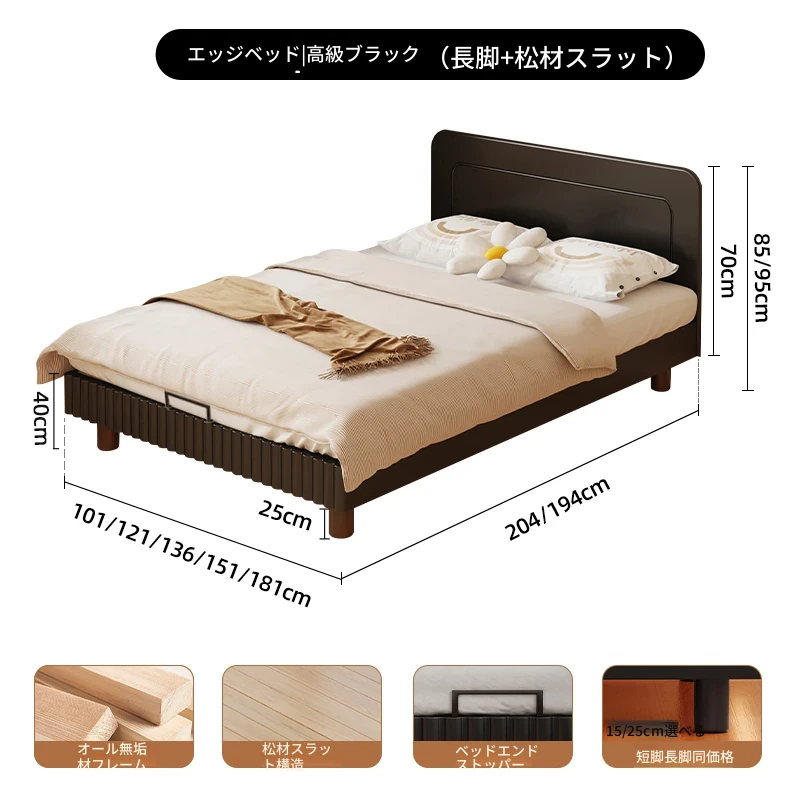 極簡ブラック | ローチェア【敷き詰め15CMパイン材ベッドボード】