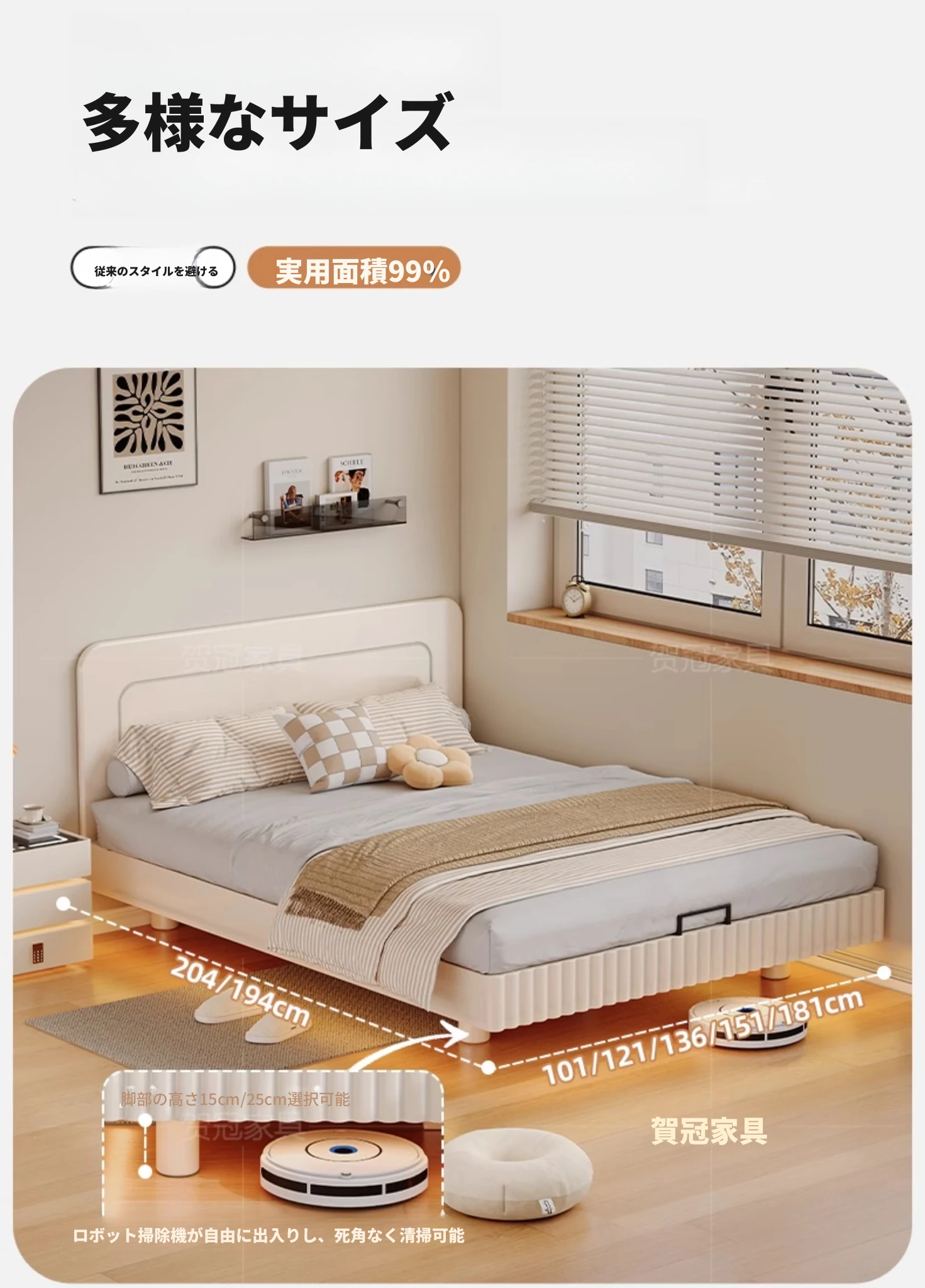 オプション:ベッド下ローラードロワー+400元【店舗割引併用可】