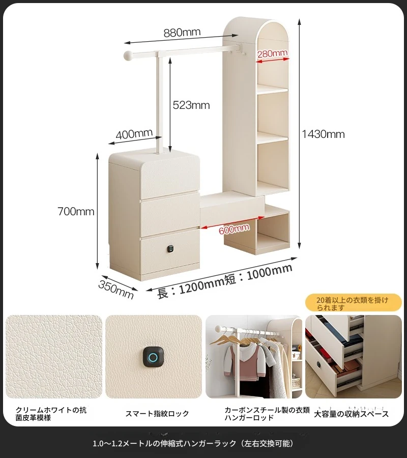 1.8メートルチェストコートラック 伸縮不可【コートラック左右両用】