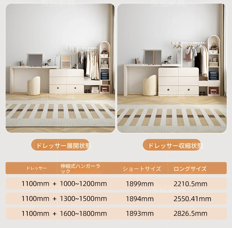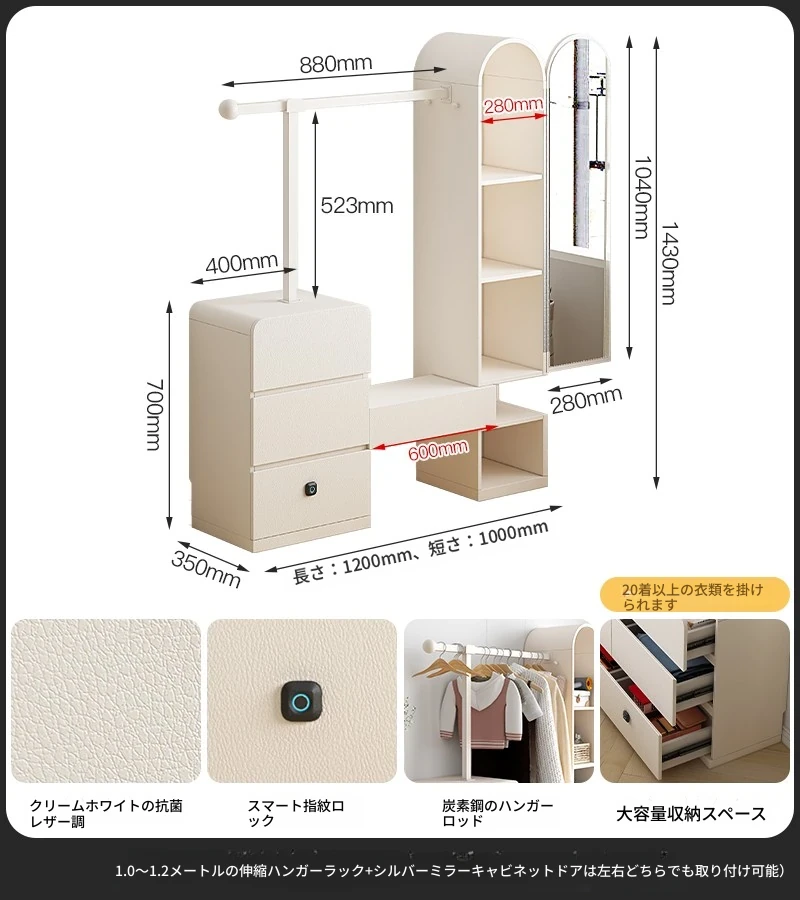1.0〜1.2メートル伸縮式コートラック+銀ミラーキャビネット扉【左右両用】