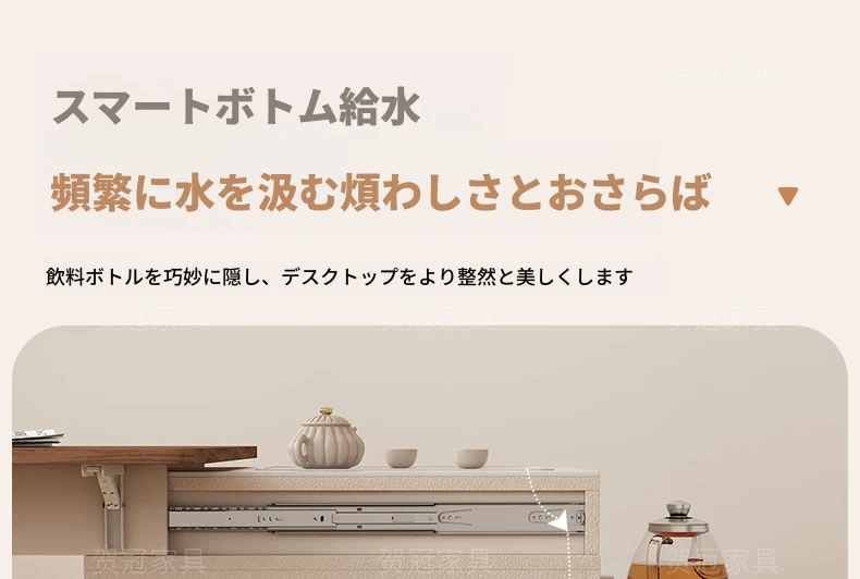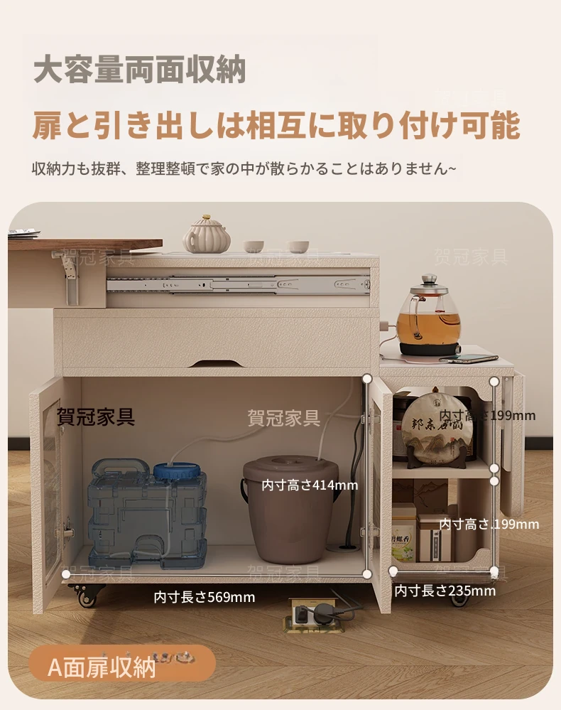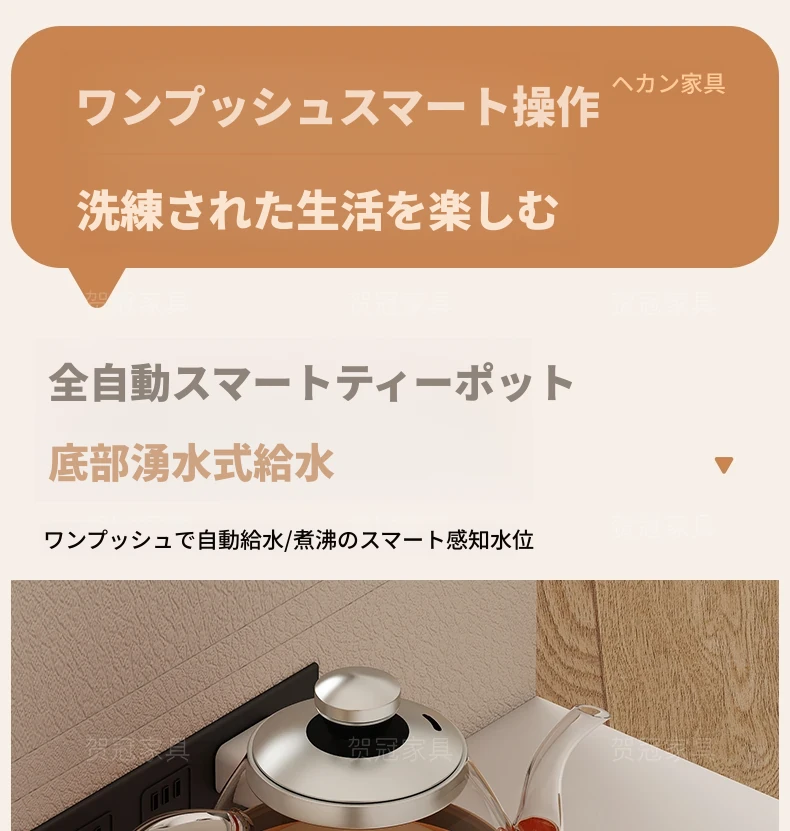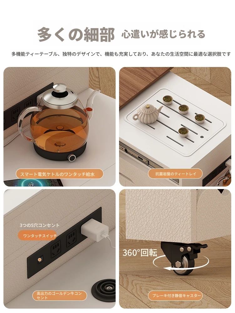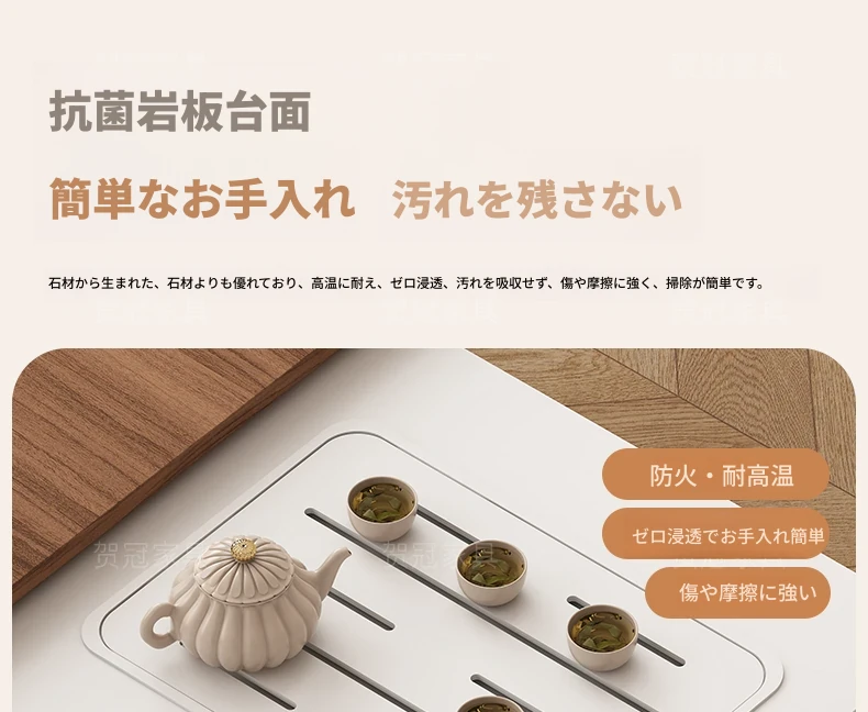 ストーン製伸縮移動式ティーテーブル 【三防抗菌ブラック+給水自動ティーポット】