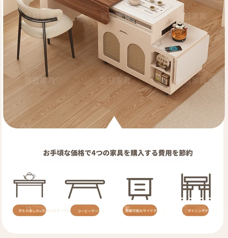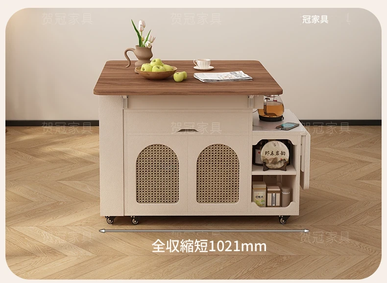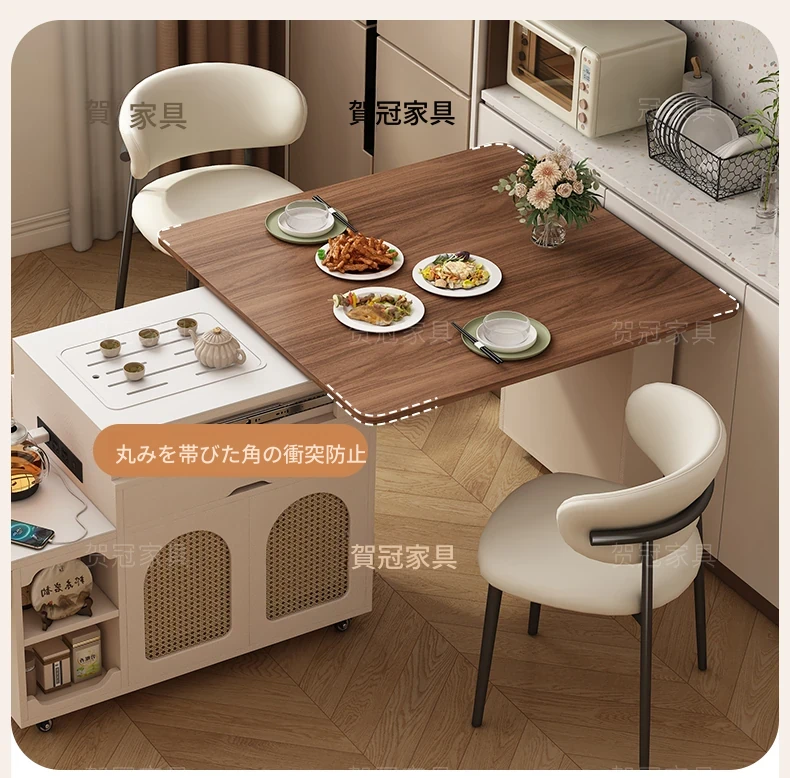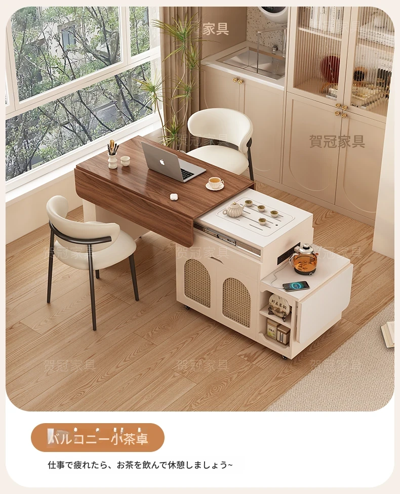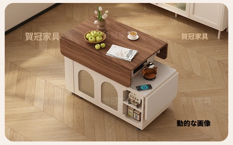 多機能コンパクトアイランドテーブル|小型で省スペース、移動可能な伸縮式折りたたみティーテーブル|小さなリビングやダイニングに最適!