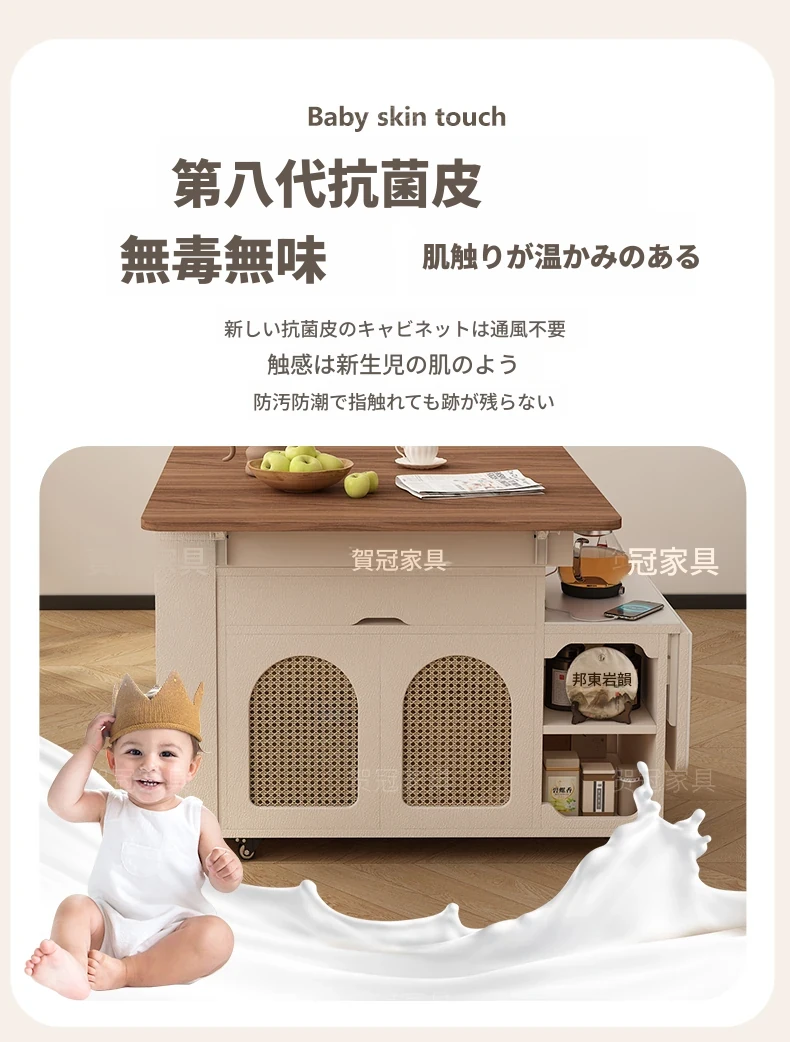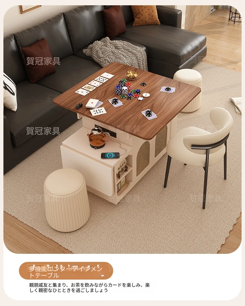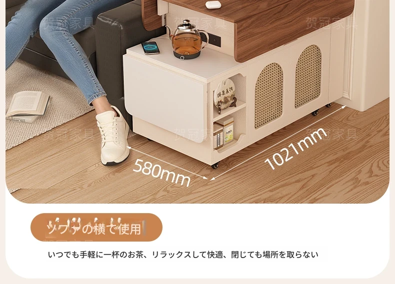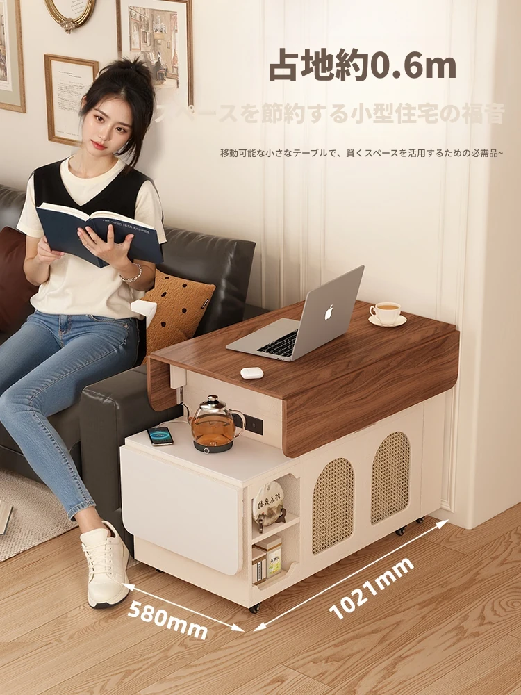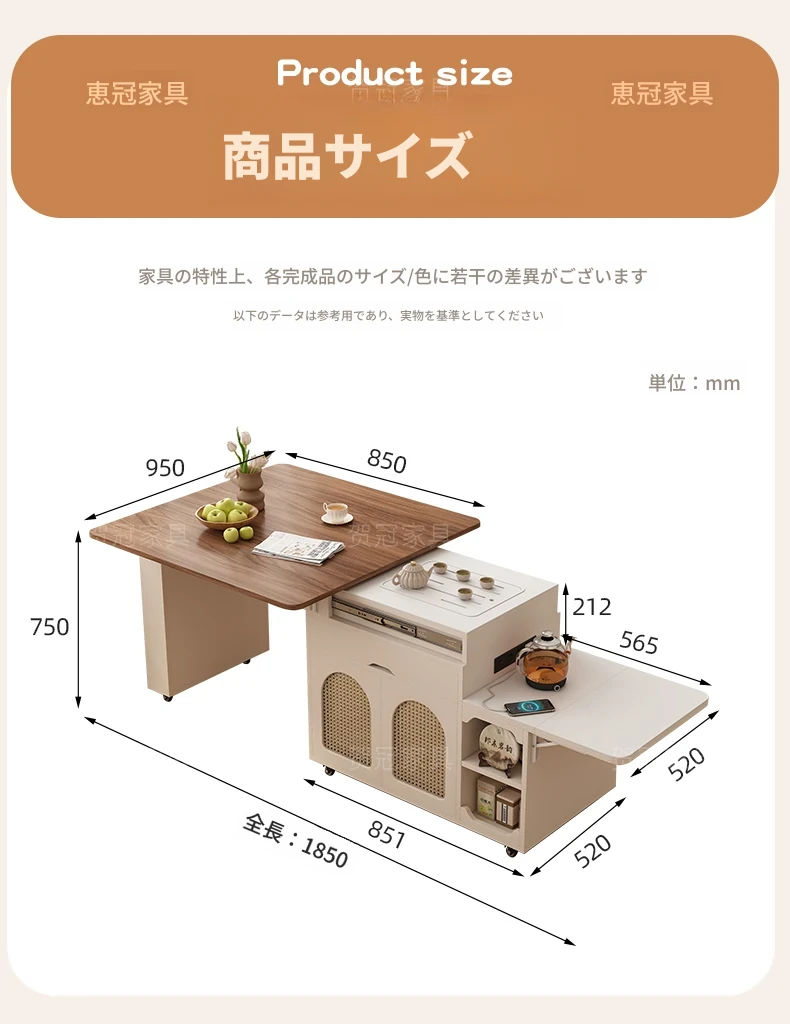 多機能コンパクトアイランドテーブル|小型で省スペース、移動可能な伸縮式折りたたみティーテーブル|小さなリビングやダイニングに最適!