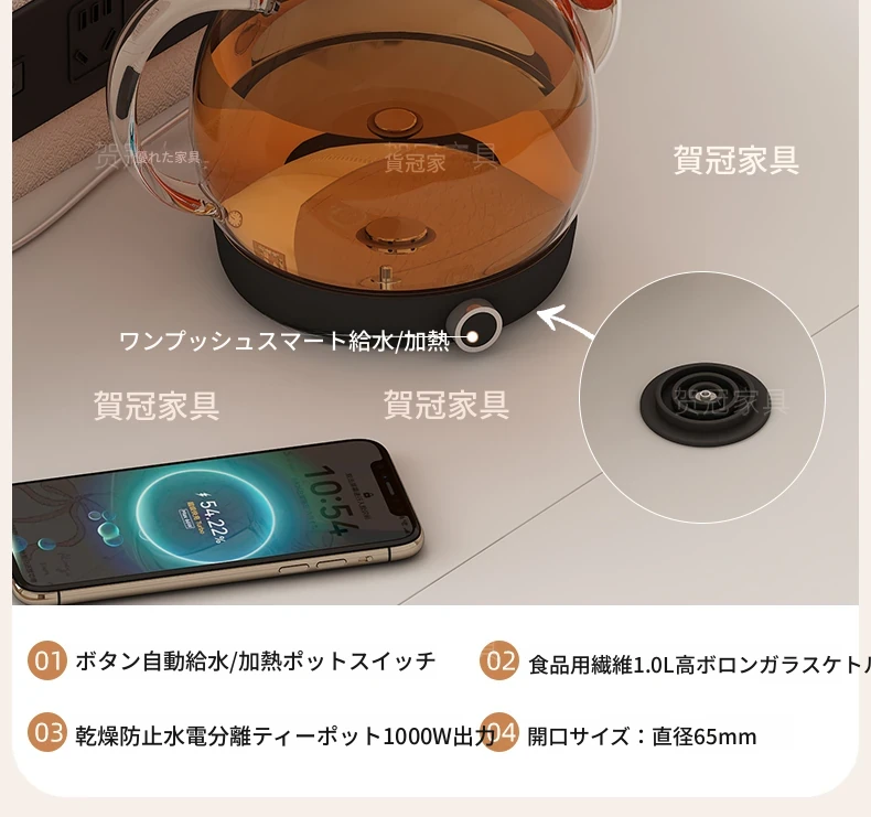 花びら型ティーテーブル湯沸かし器一体型 【五防抵抗高級ブラック】