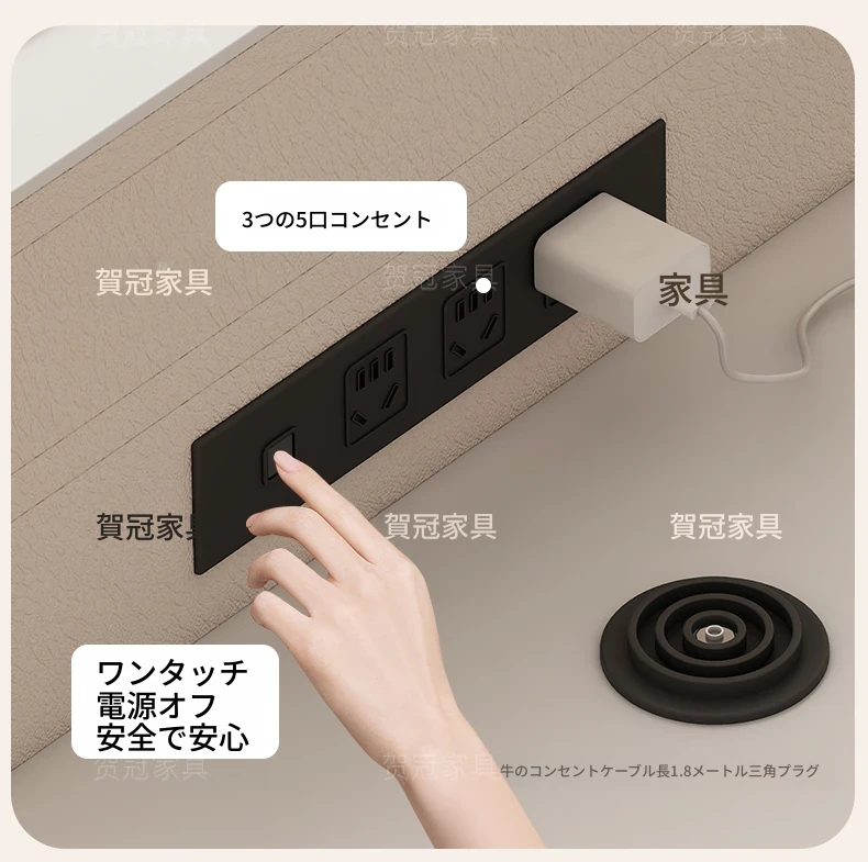 0.8メートル移動式ソファサイドテーブル湯沸かし器一体型 【三防抗菌ブラック】