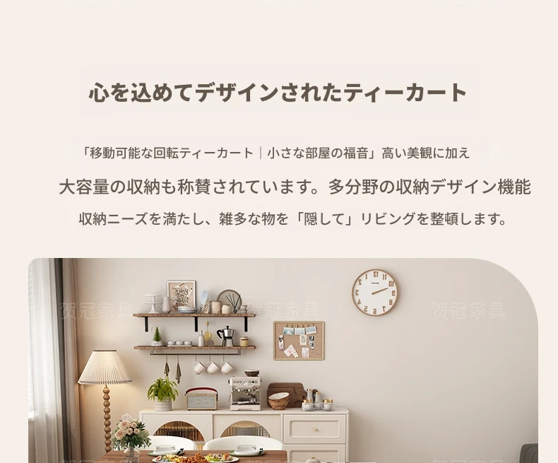 0.85メートル移動式昇降回転ティーワゴン (ENF級無垢材 クリームホワイト)