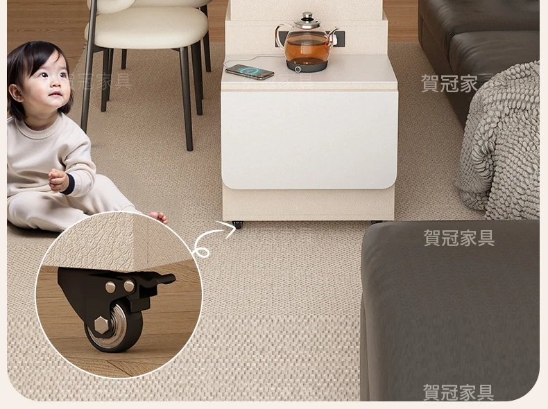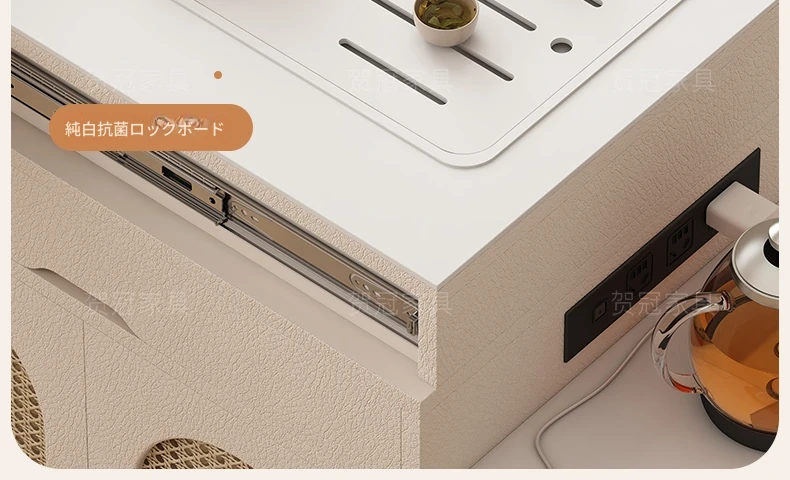 0.8メートル移動式ソファサイドテーブル湯沸かし器一体型 【三防抗菌レザー調ホワイト】