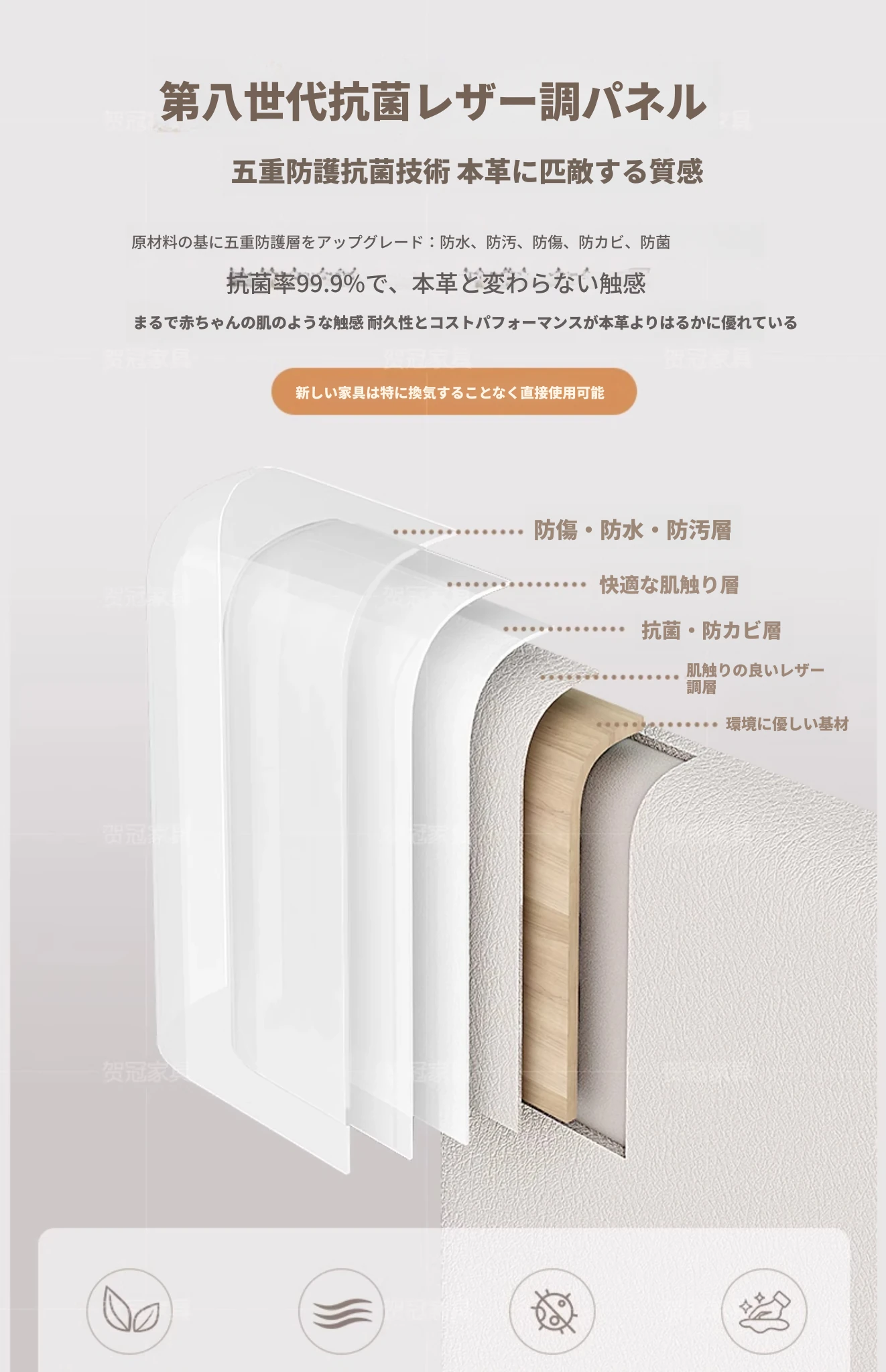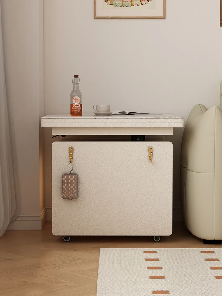 岩板伸縮移動ティーテーブル【抗菌レザー模様ホワイト+自動給水】