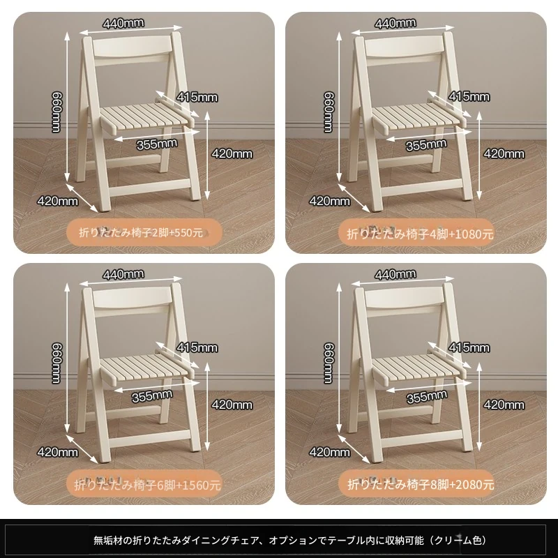 カスタマーサービスに相談して選択 ダイニングチェアの数量【天然木折りたたみ+ クリームホワイト】