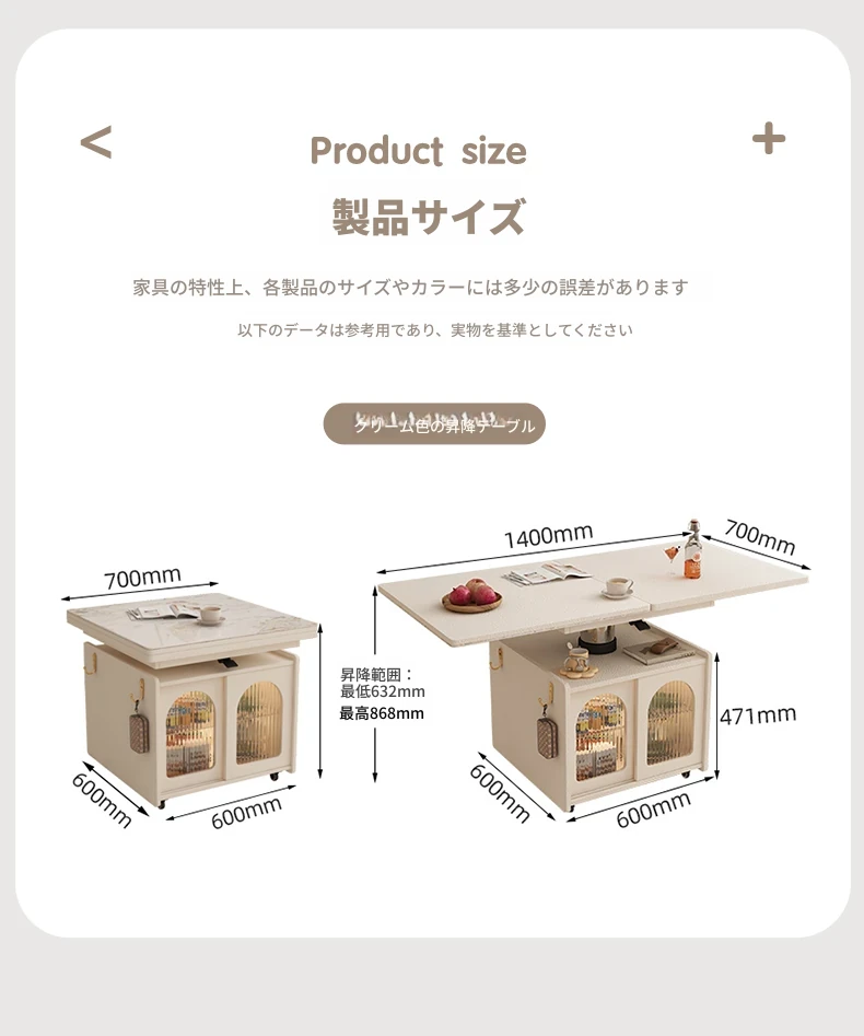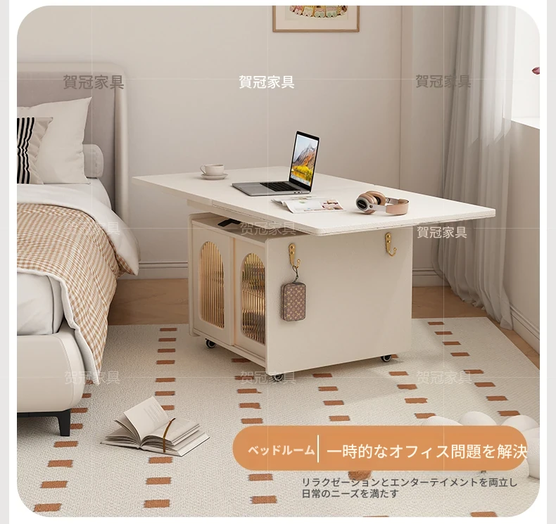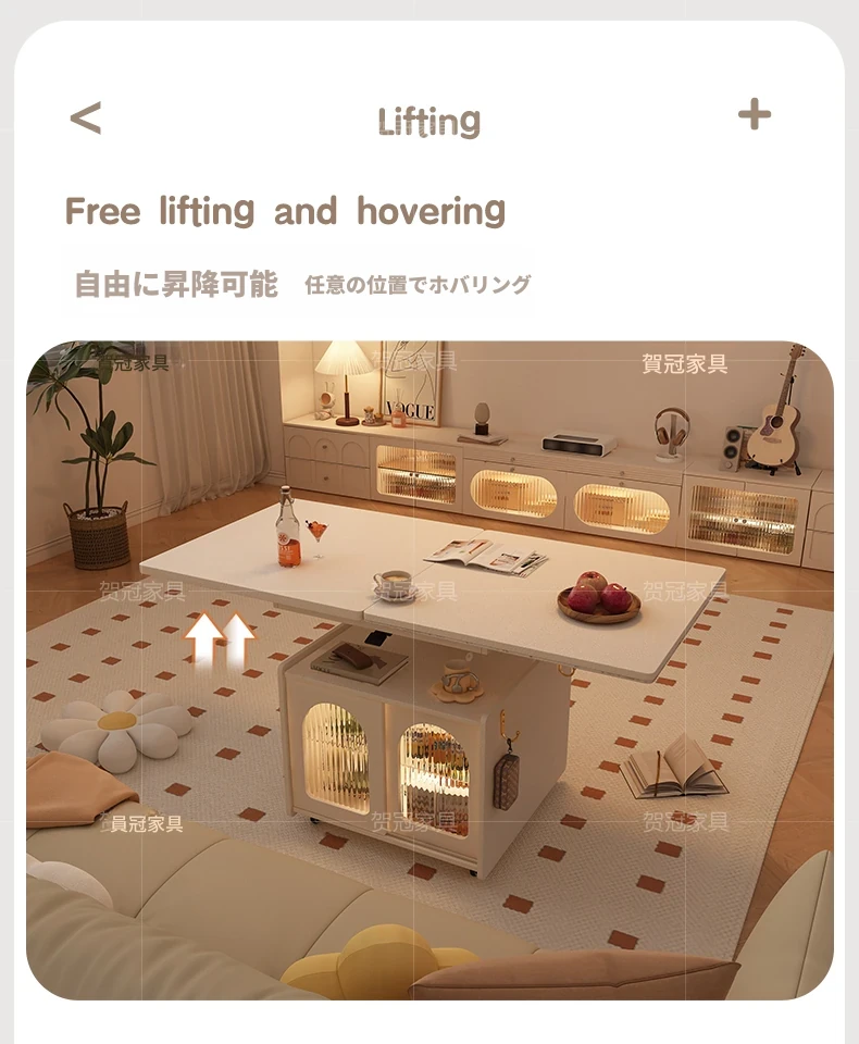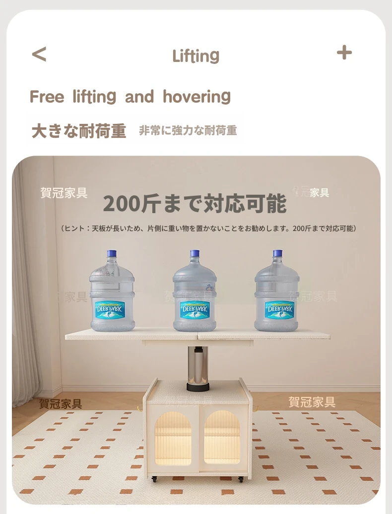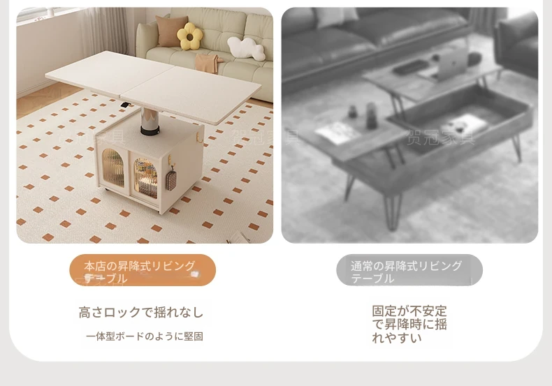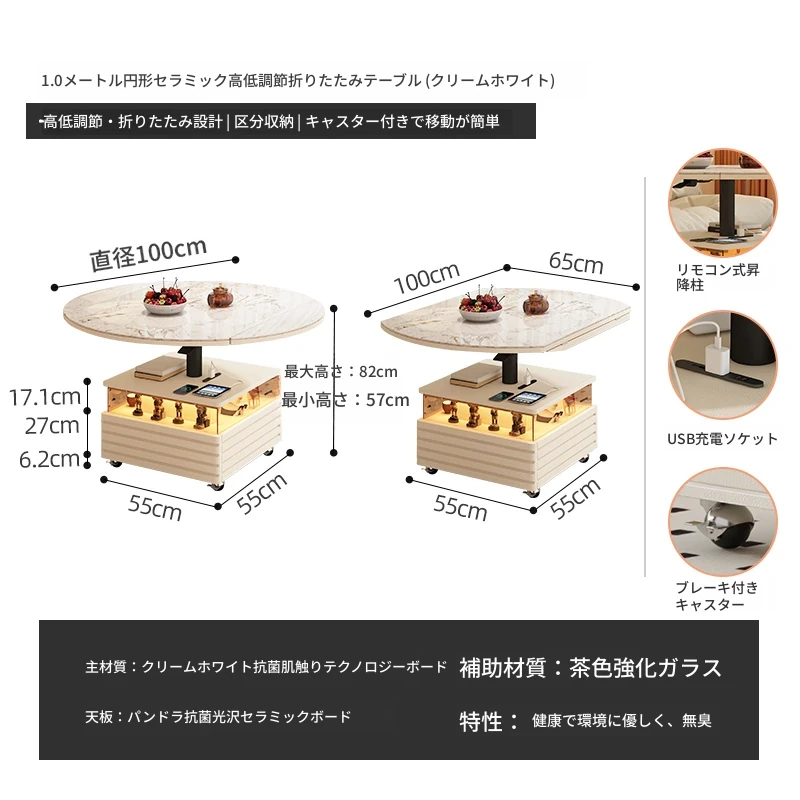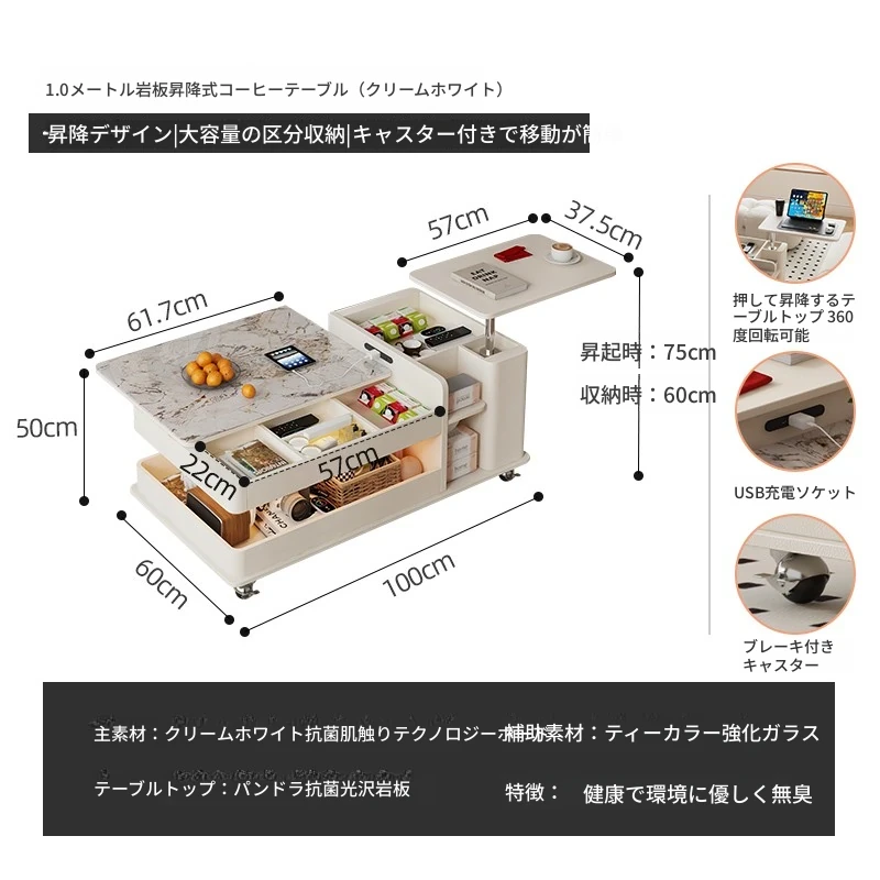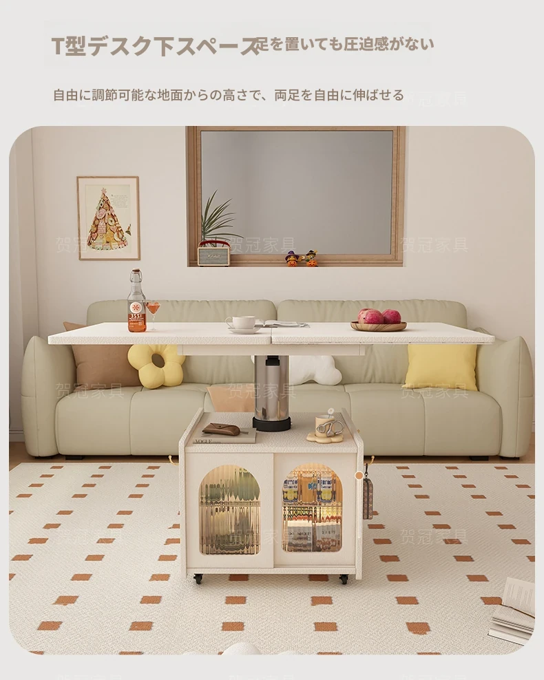 1.0メートル多機能昇降方形ティーテーブル【クリームホワイト】