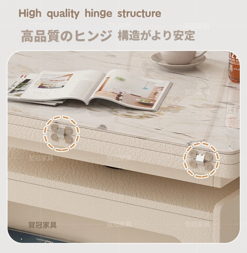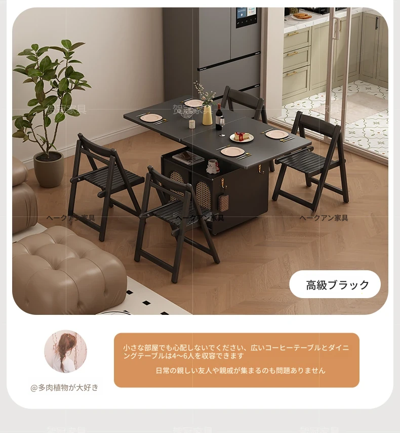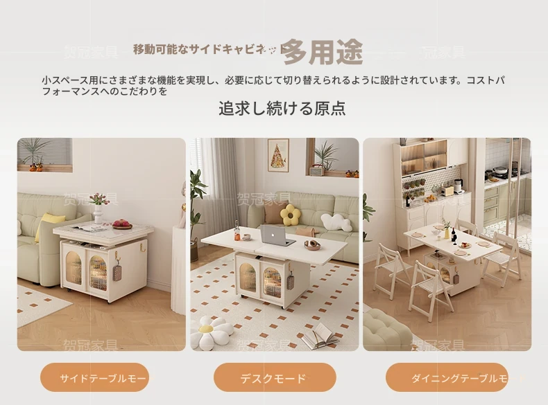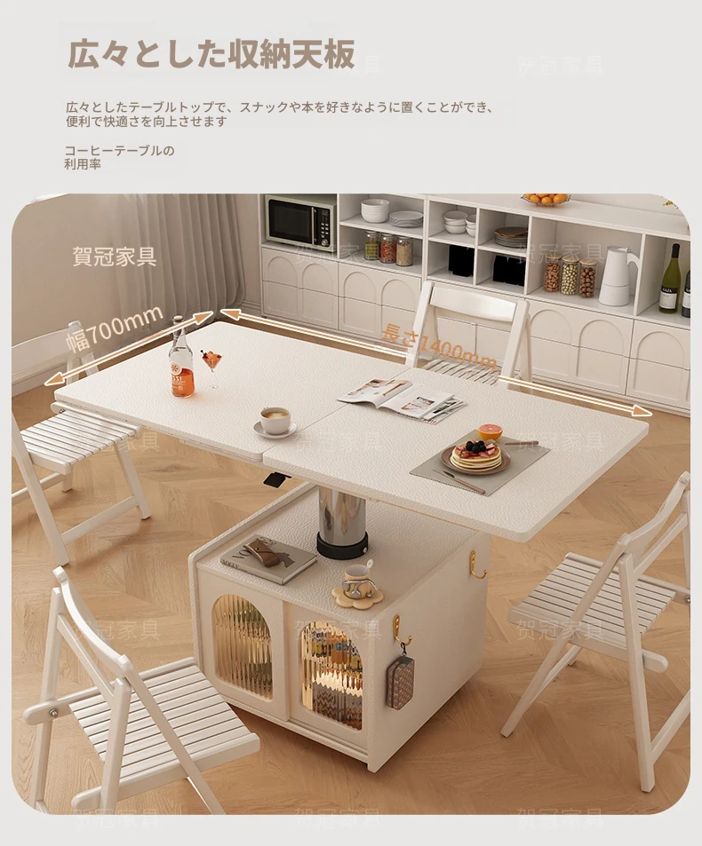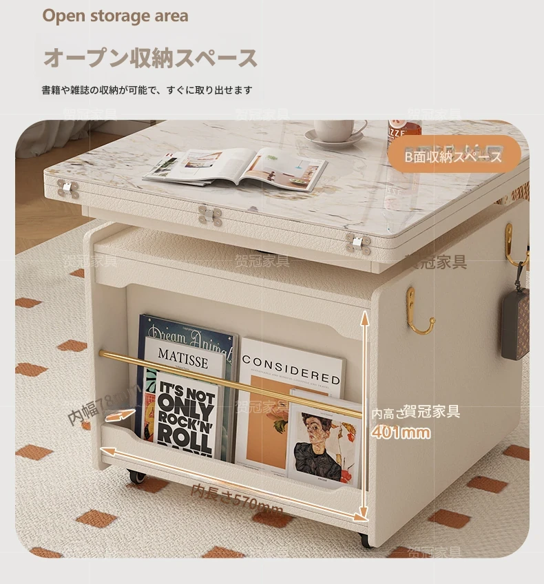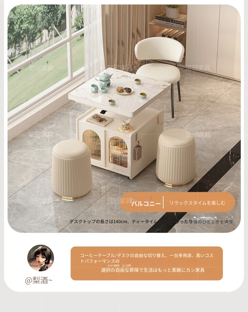 【特長】多機能な岩板テーブル、便利に収納できて機能的!