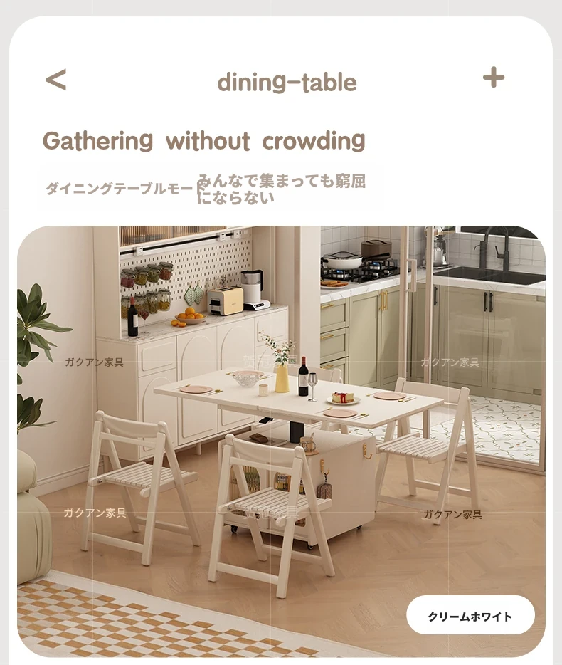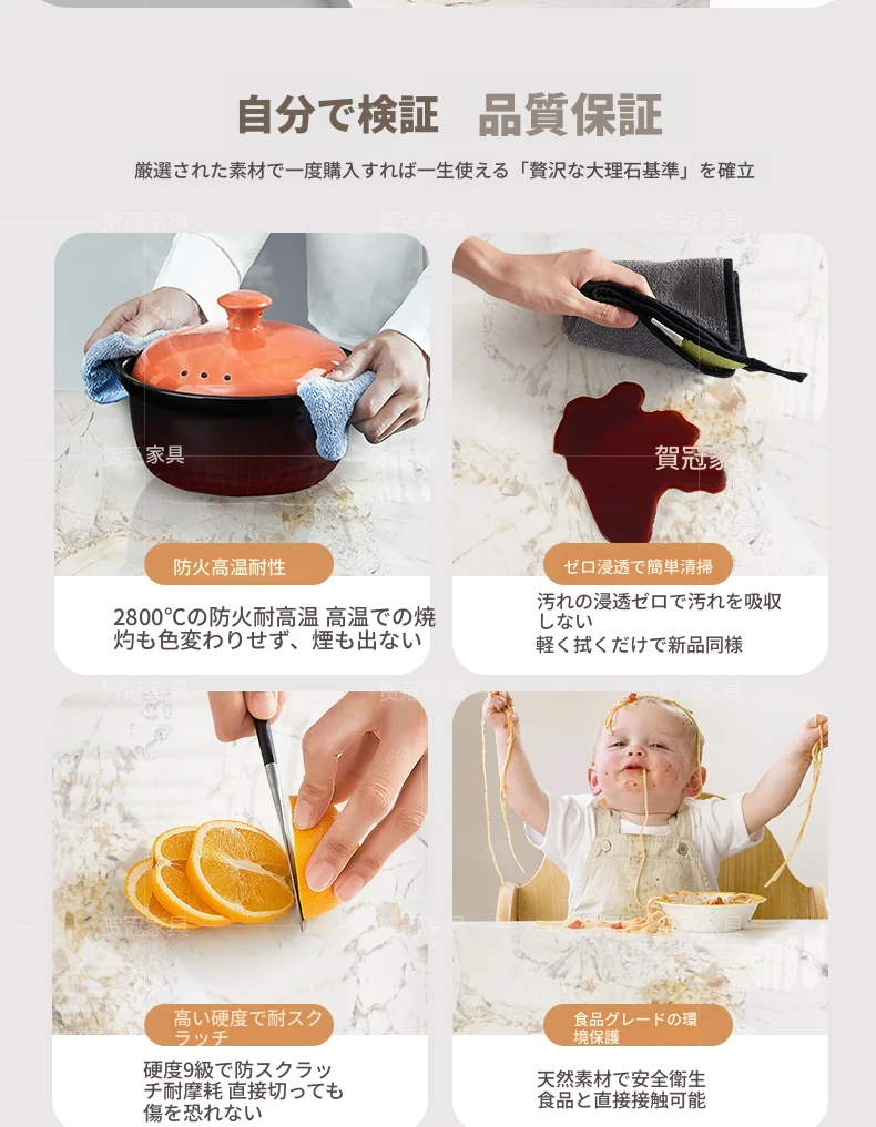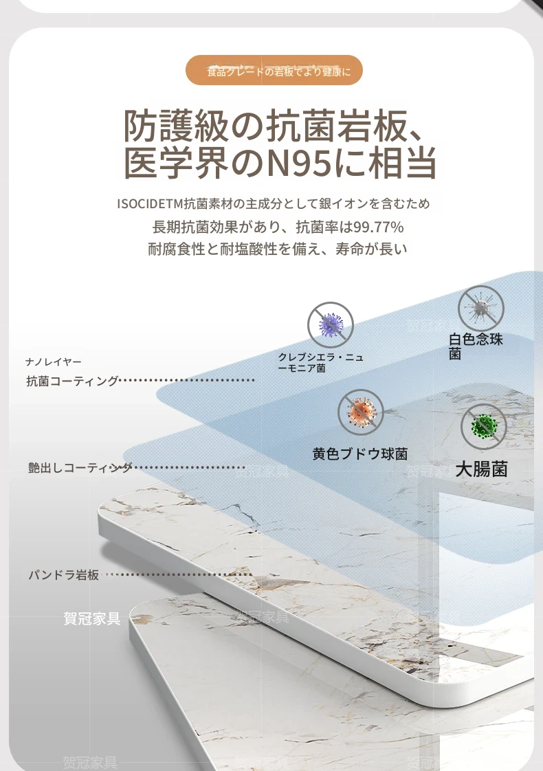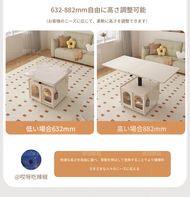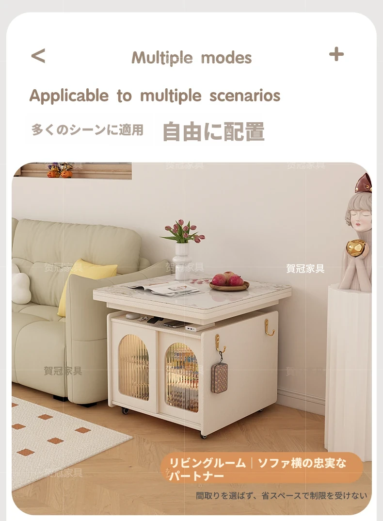 【特長】多機能な岩板テーブル、便利に収納できて機能的!