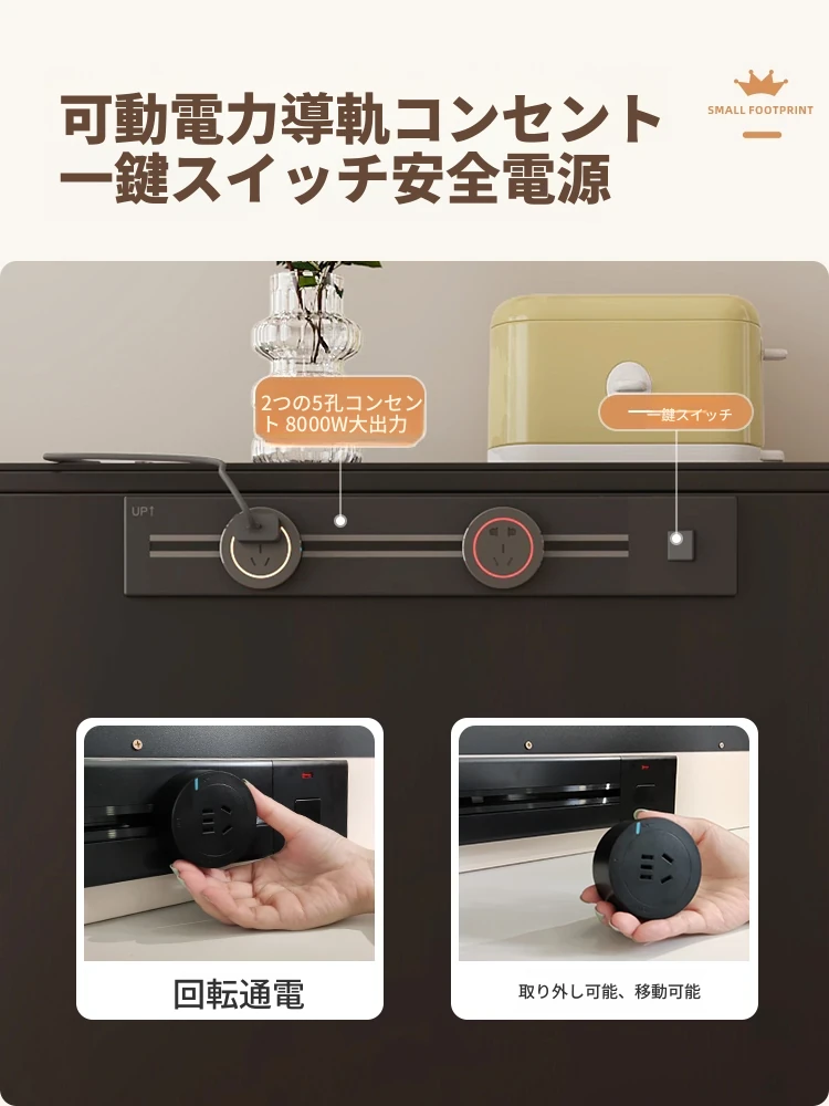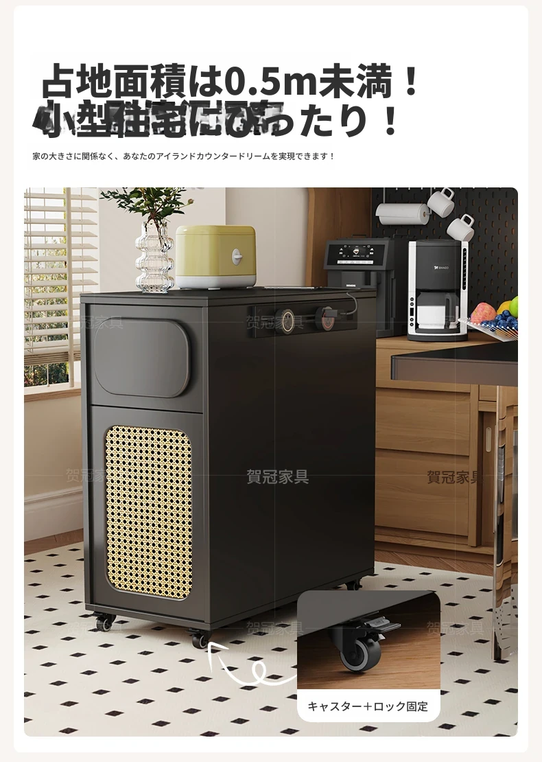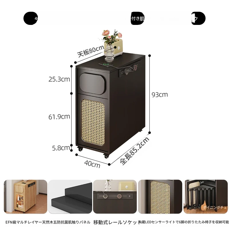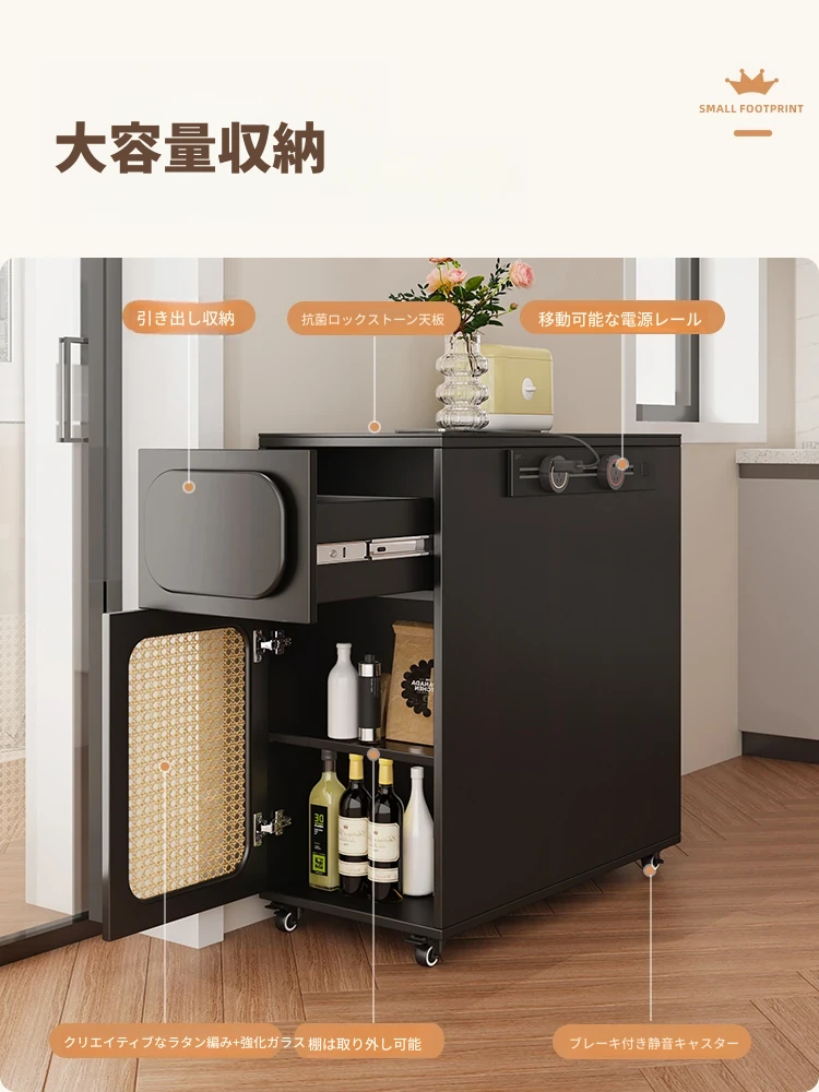 0.4メートルの狭い島台キャビネット+キャスター【折りたたみ椅子6脚収納可+抗菌岩板天板+五つの防菌高級ブラック】