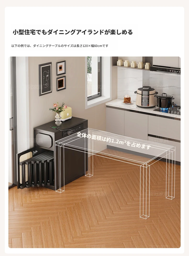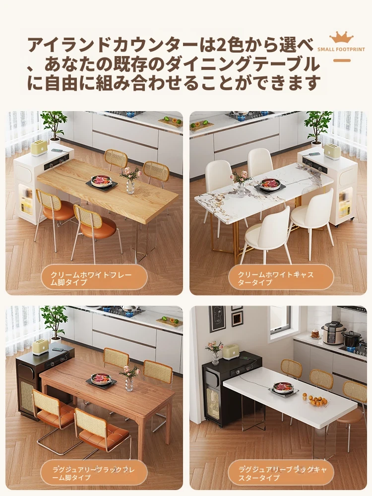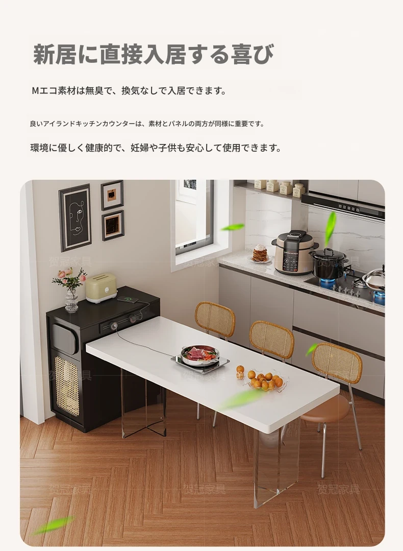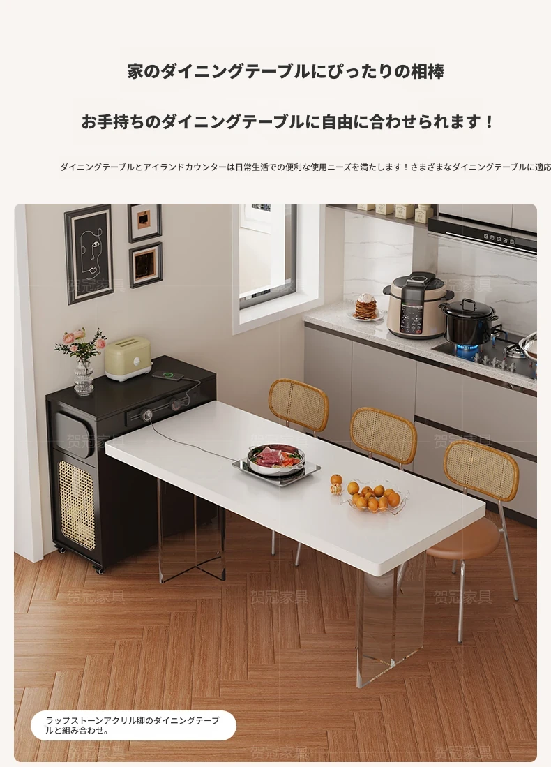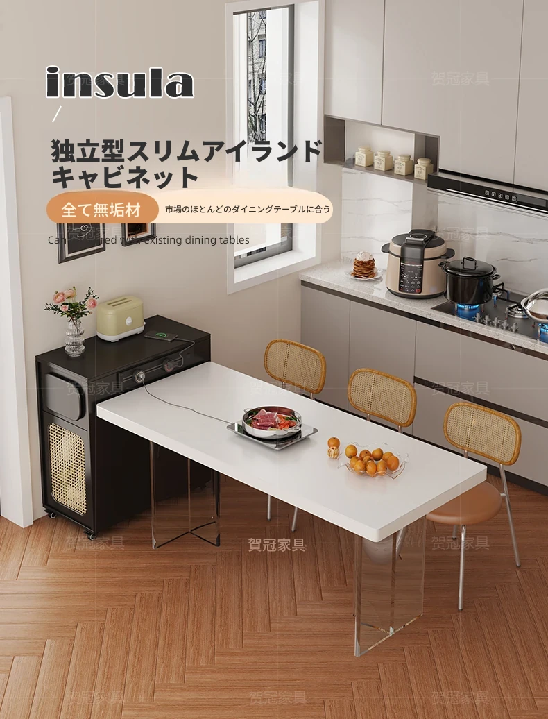フランス風超コンパクトアイランドテーブル - セパレート可能なダイニング&キッチン一体型、超スリムデザインで小型スペースにも最適!移動可能なミニアイランドキャビネットで、スタイリッシュな食卓空間を実現!