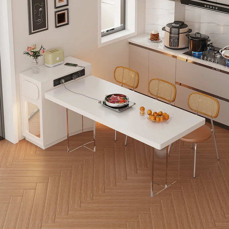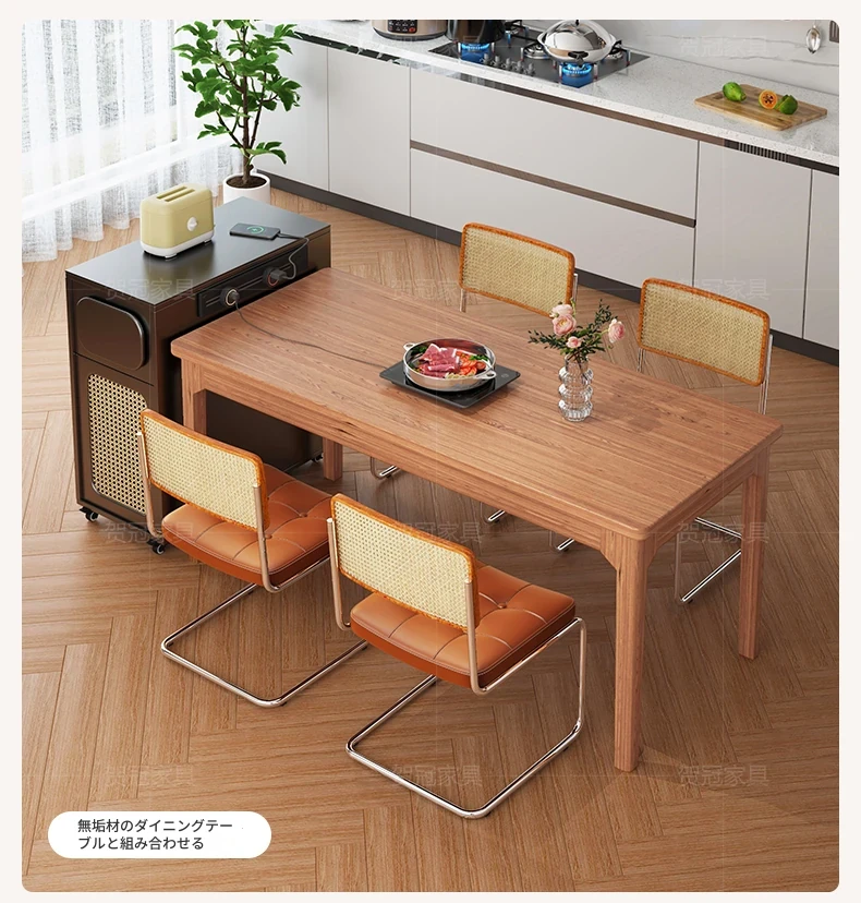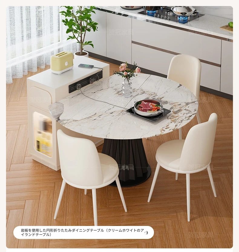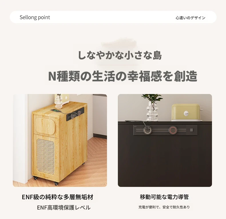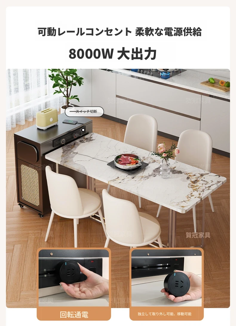 フランス風超コンパクトアイランドテーブル - セパレート可能なダイニング&キッチン一体型、超スリムデザインで小型スペースにも最適!移動可能なミニアイランドキャビネットで、スタイリッシュな食卓空間を実現!