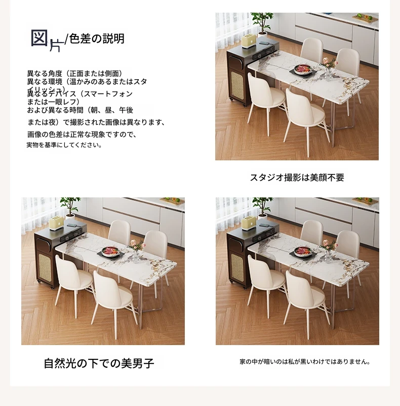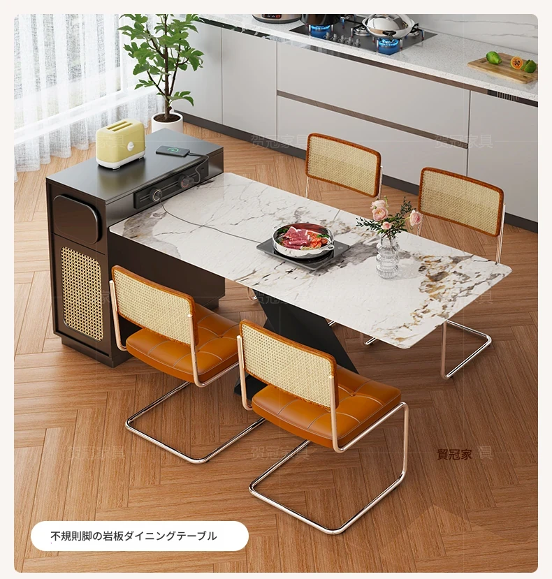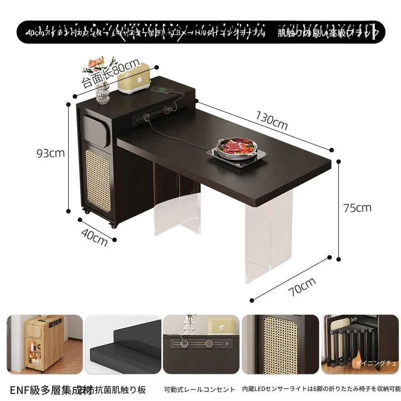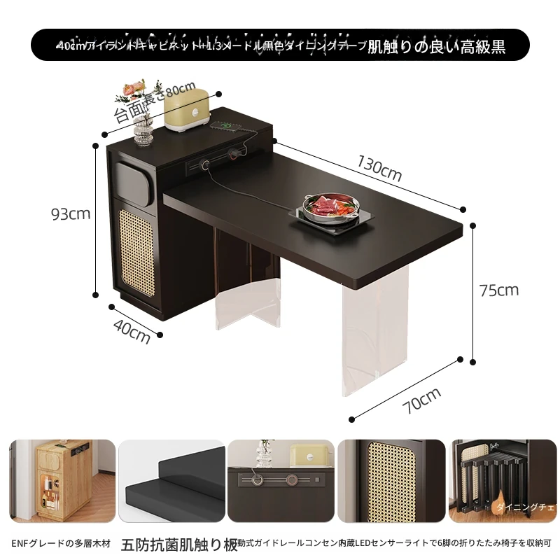 0.4メートルの狭い島台キャビネット+1.3メートルアクリルテーブル【折りたたみ椅子6脚収納可+抗菌岩板天板+五つの防菌高級ブラック】