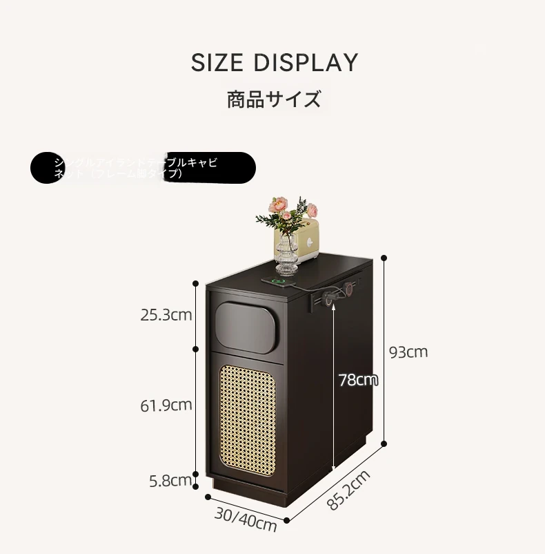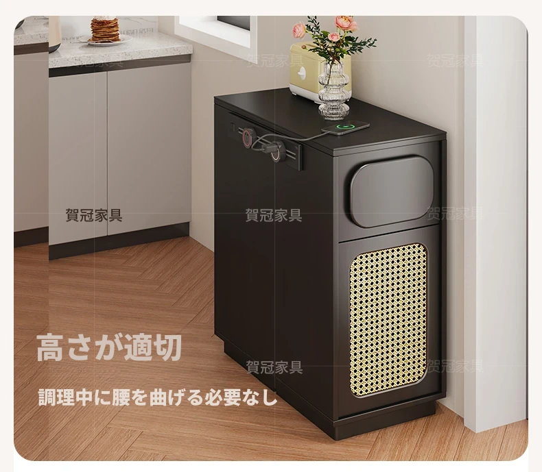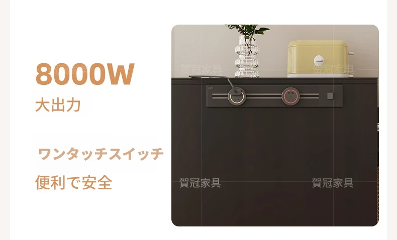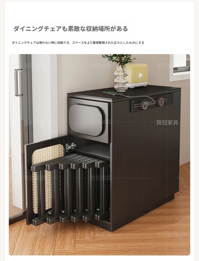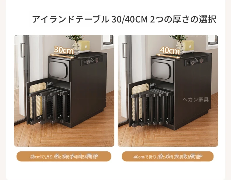 0.4メートルの狭い島台キャビネット【折りたたみ椅子6脚収納可+抗菌岩板天板+五つの防菌高級ブラック】