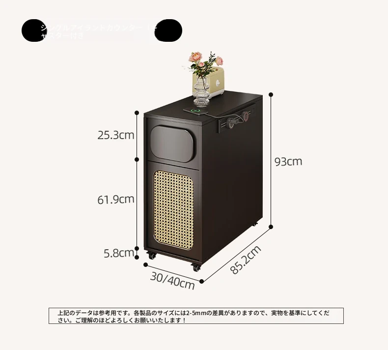 0.4メートルの狭い島台キャビネット+キャスター+1.3メートルアクリルテーブル【折りたたみ椅子6脚収納可+抗菌岩板天板+五つの防菌高級ブラック】