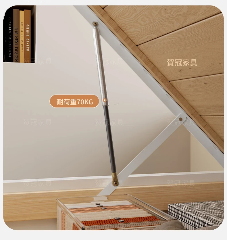 【クリーム色】ヘッドボードなし-圧力式側開き収納ベッド+背中を守るスプリングマットレス20cm