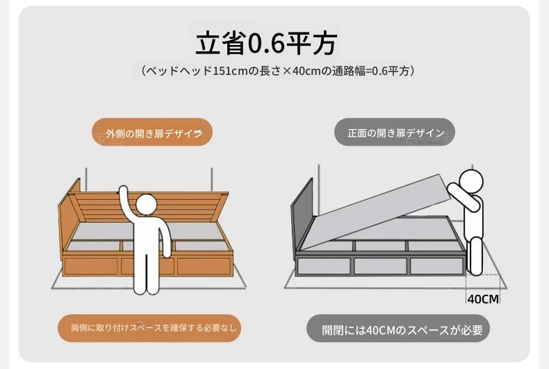 【高級ブラック】ヘッドボードなし-圧力式側開き収納ベッド+背中を守るスプリングマットレス20cm