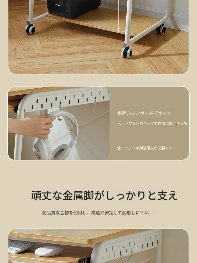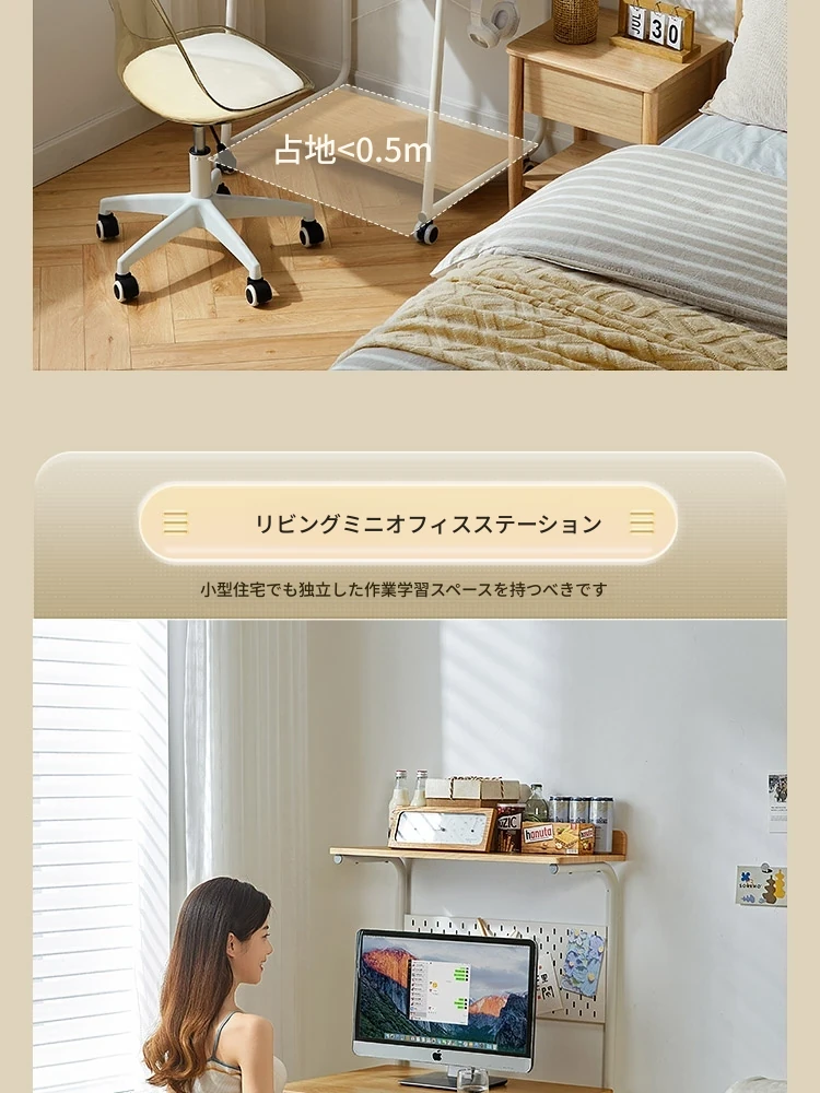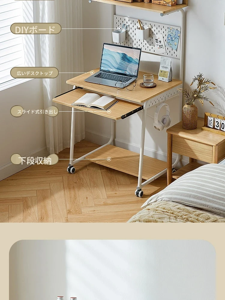 林氏家居のスタイリッシュな穴あきデスク - 移動可能な寝室用コンピューターデスク!小スペースに最適な大人向け木製デスク。快適な作業環境を実現します!
