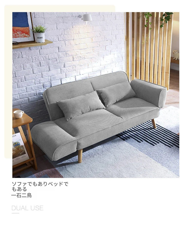 リンシー家具 小型実木脚 アームレス布製ソファベッド 多機能 折りたたみ可能 おしゃれなリビングセット LS075 使い勝手抜群で、狭いスペースにも最適!