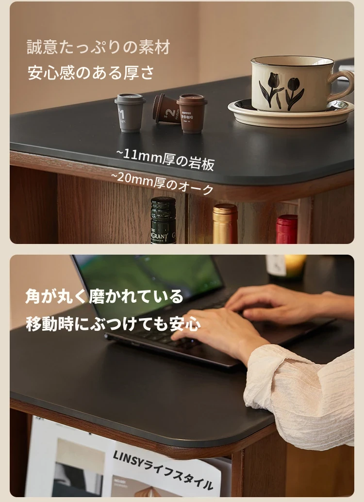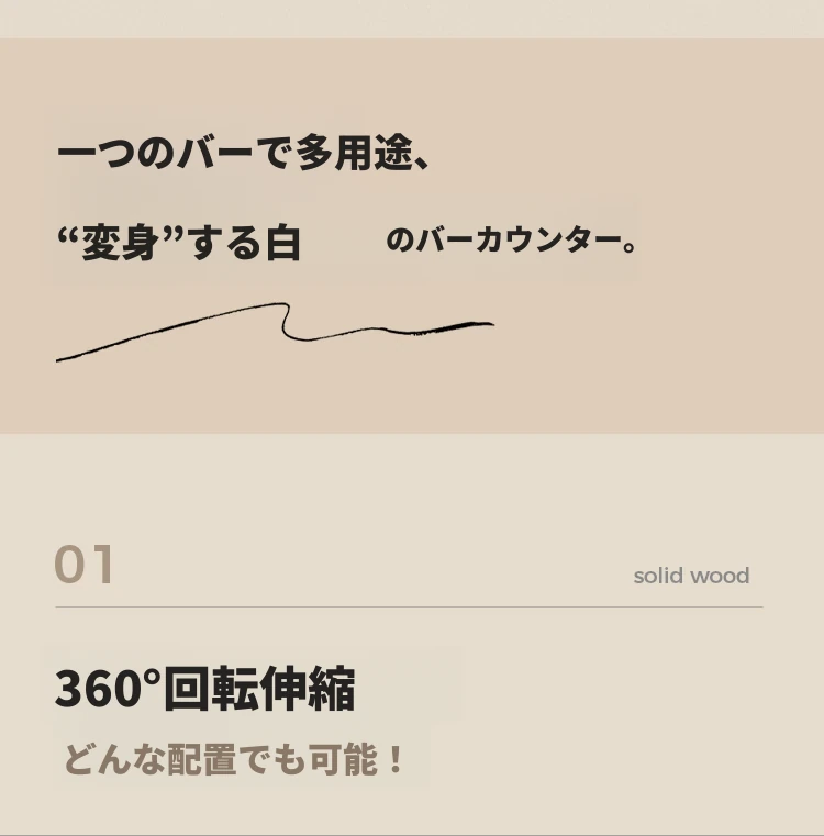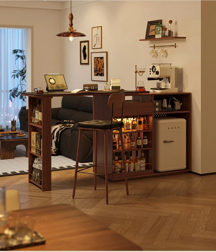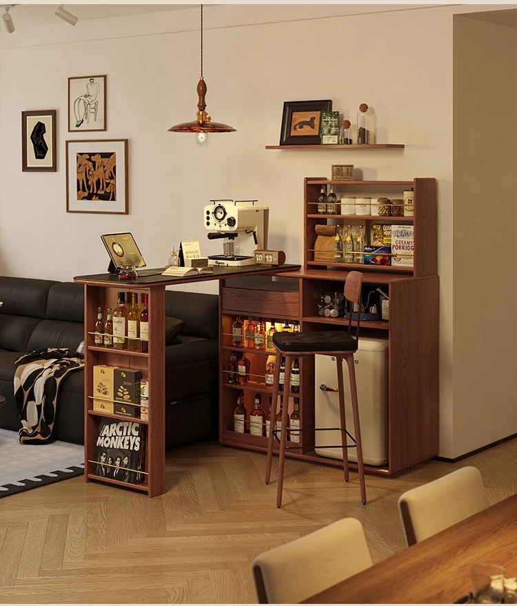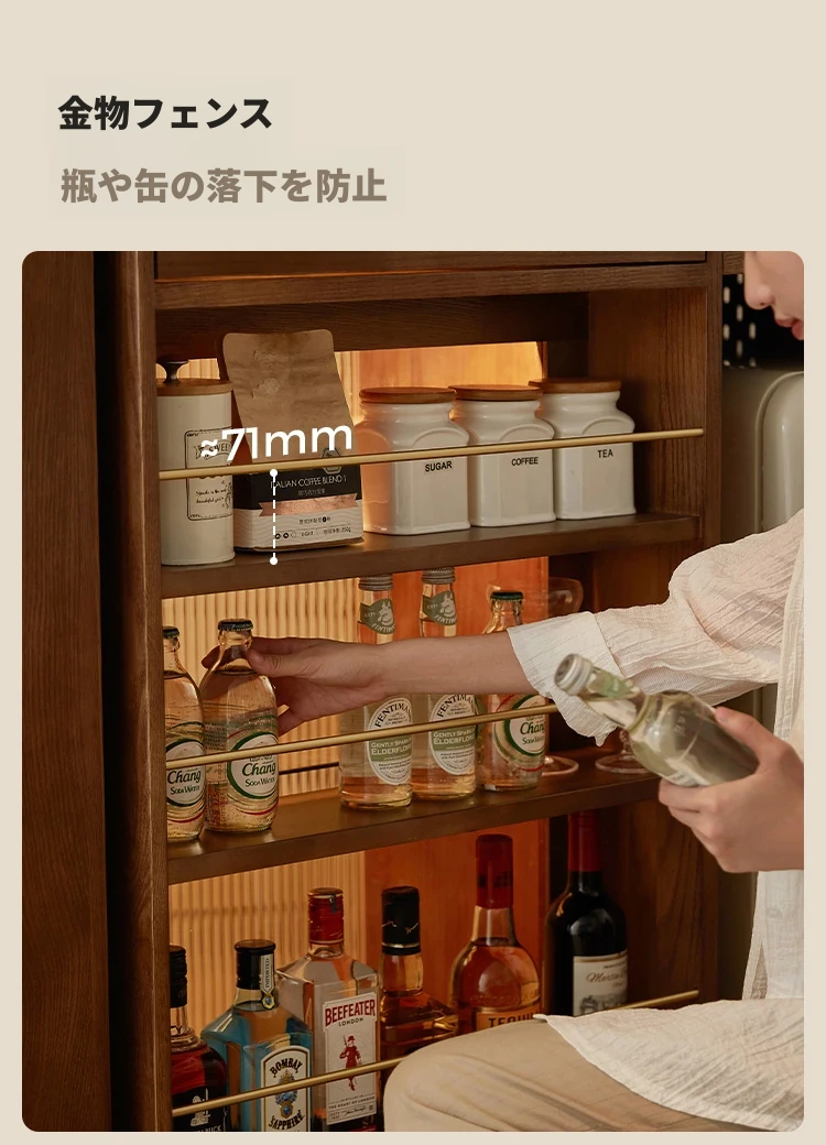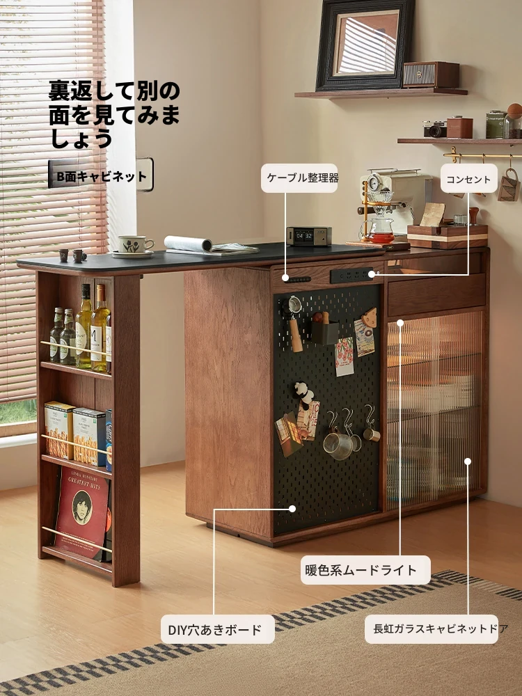 林氏家居の伸縮式無垢材バー台テーブル&ワインキャビネット一体型オーク収納キャビネット・仕切り収納・ココシリーズ。スタイリッシュなデザインで、お部屋をおしゃれに演出!
