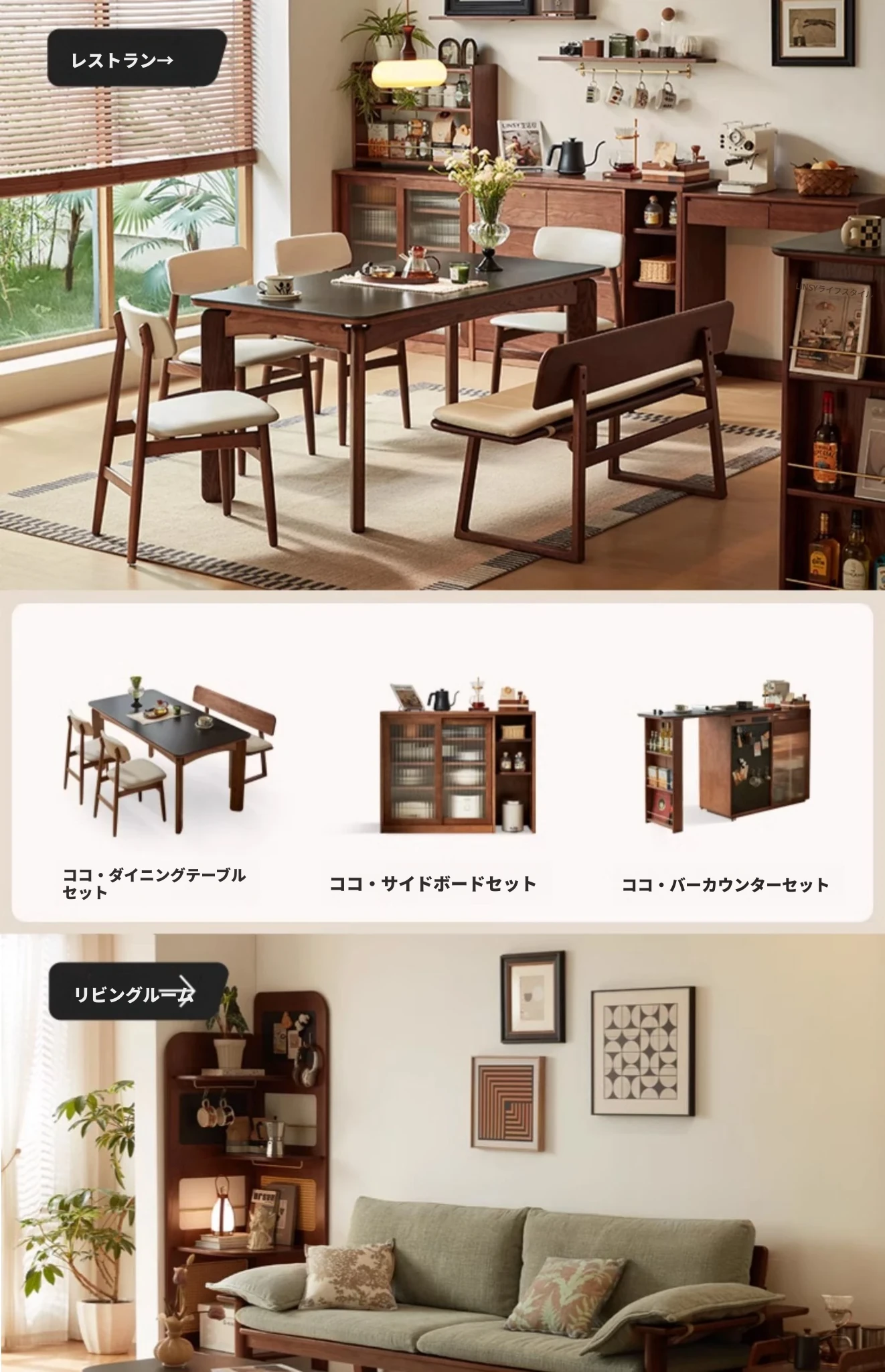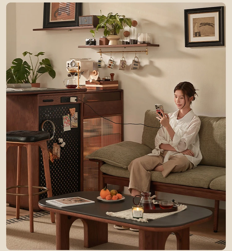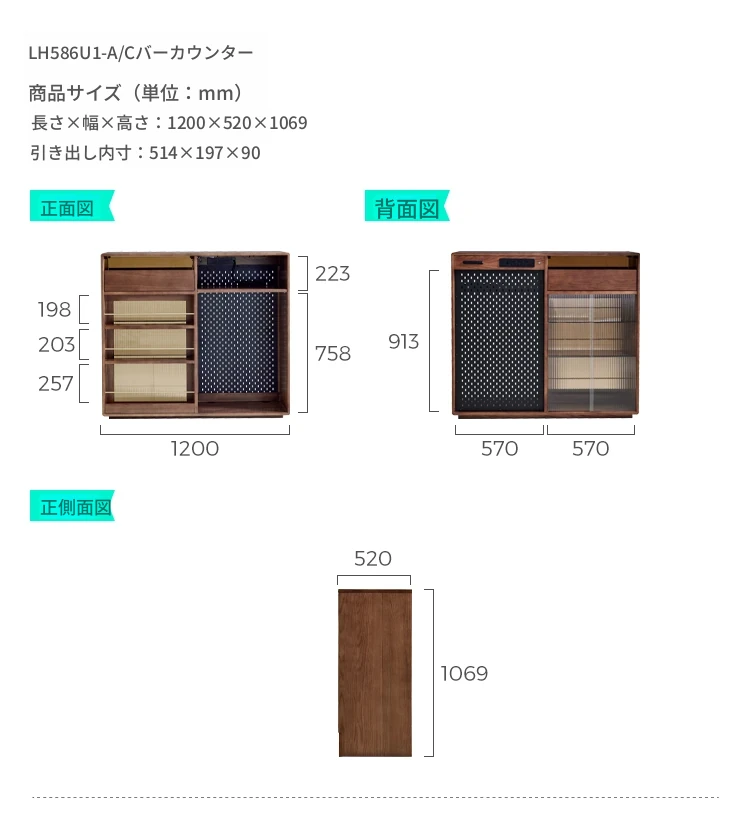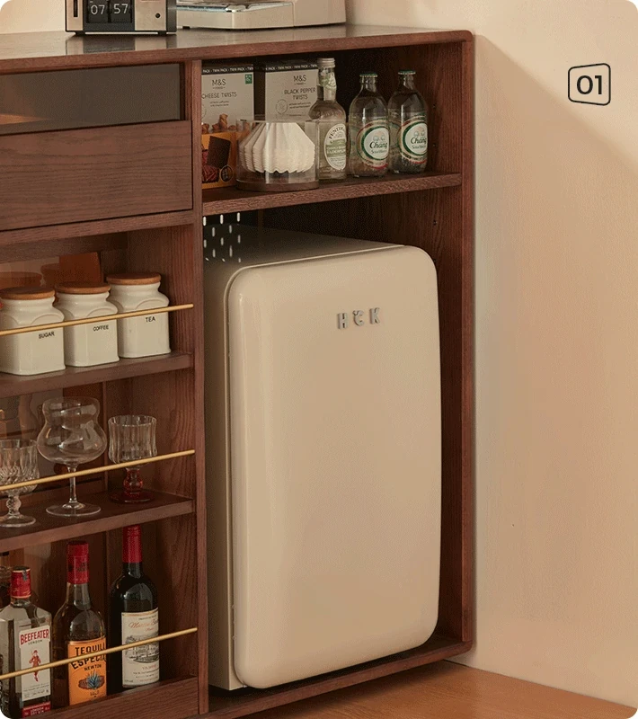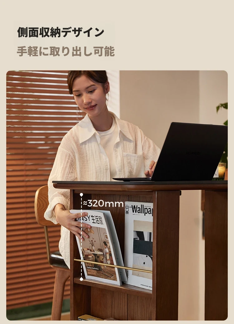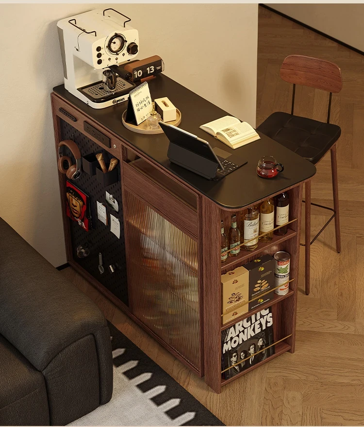林氏家居の伸縮式無垢材バー台テーブル&ワインキャビネット一体型オーク収納キャビネット・仕切り収納・ココシリーズ。スタイリッシュなデザインで、お部屋をおしゃれに演出!