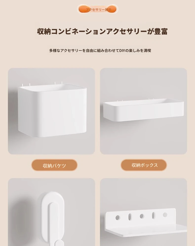 【アクセサリー8点セット】収納バケツ*1+フック*4+収納ボックス*1+収納ラック*2