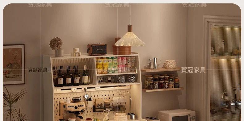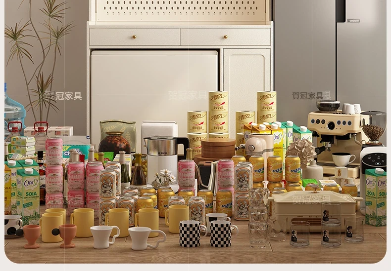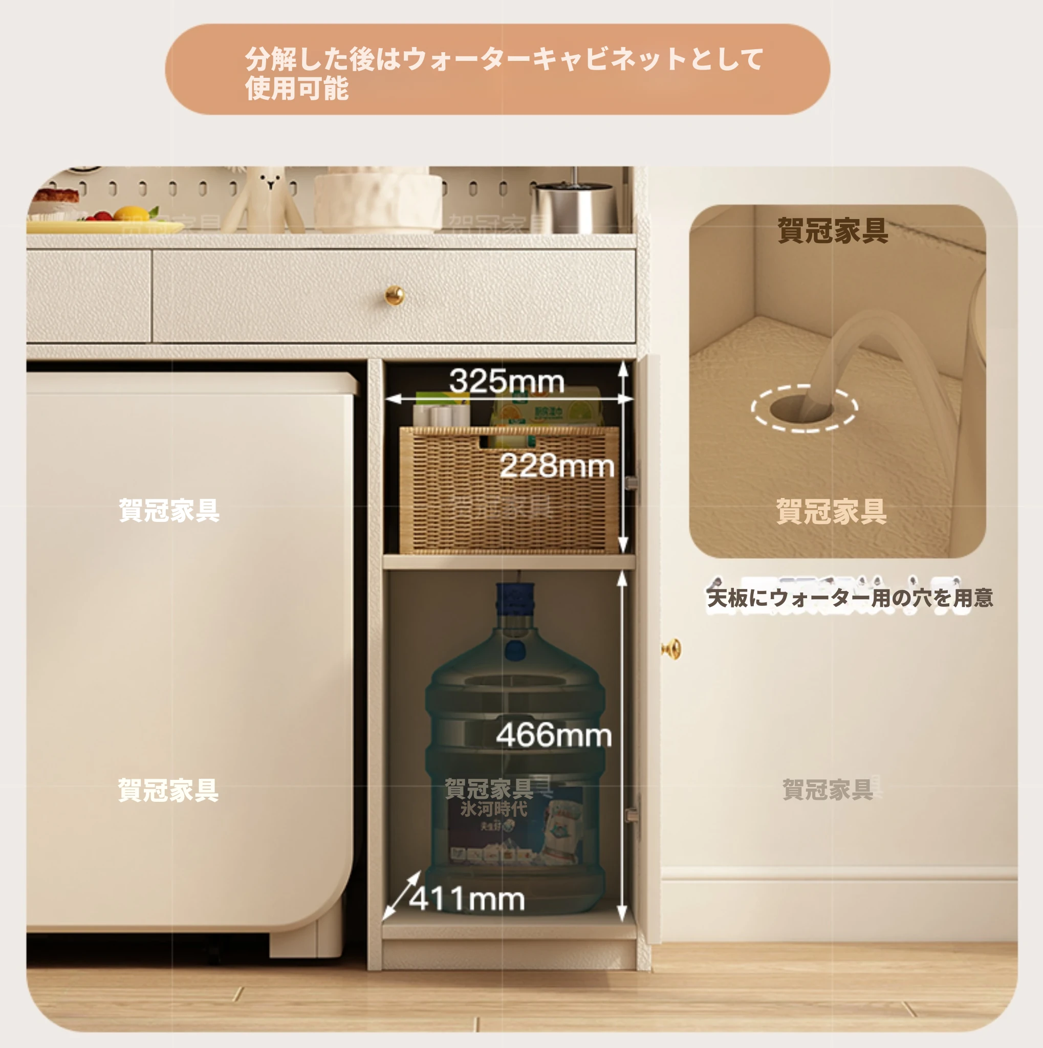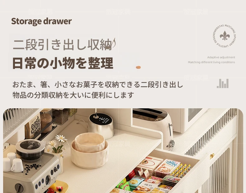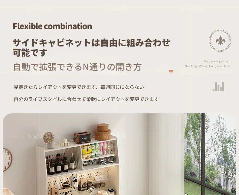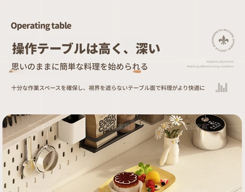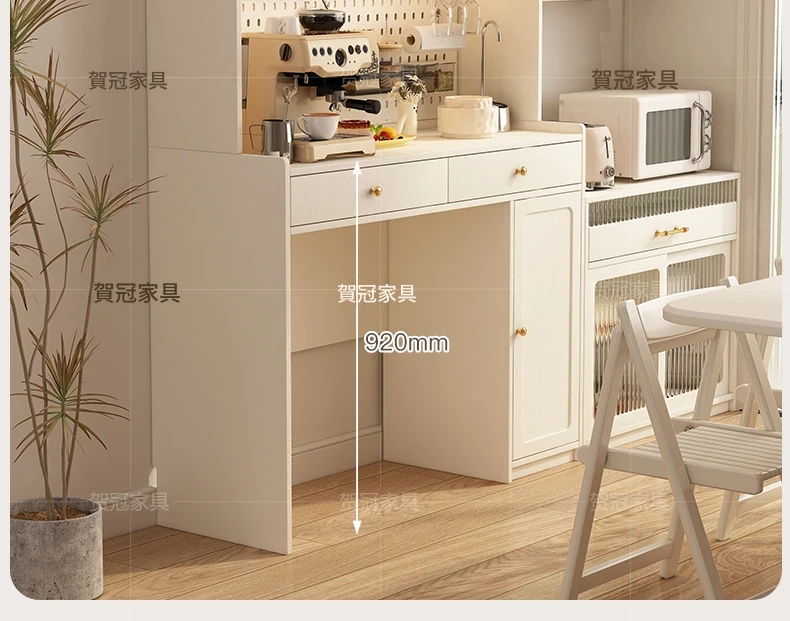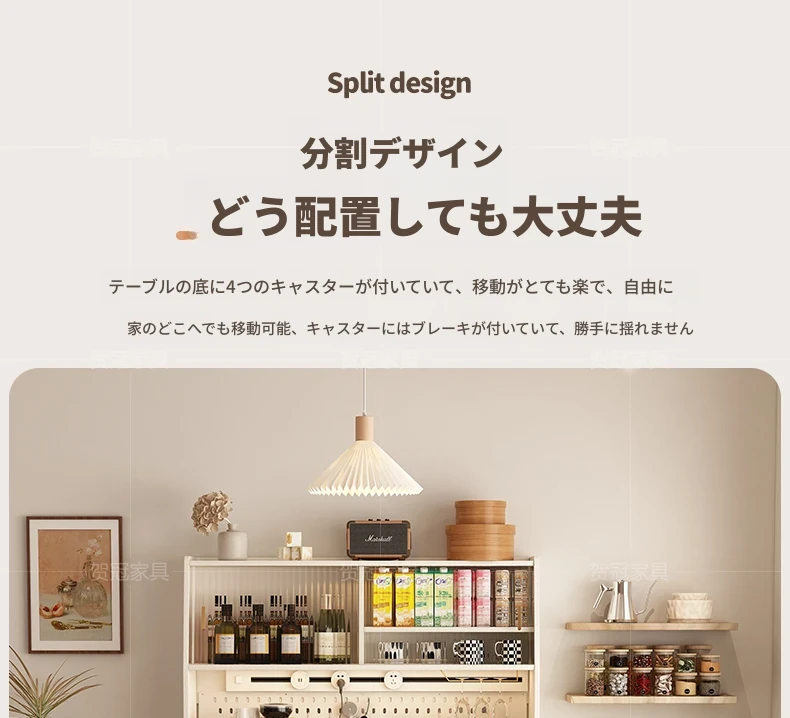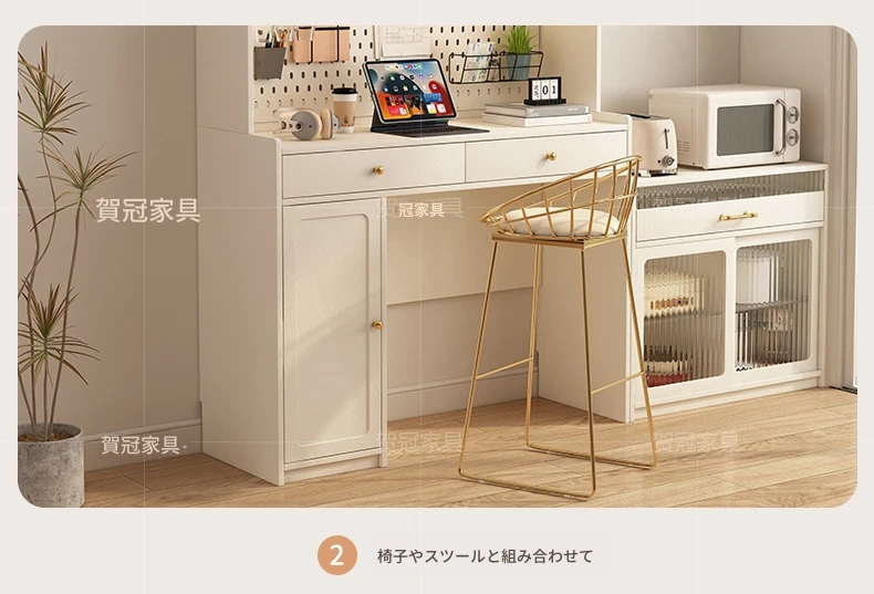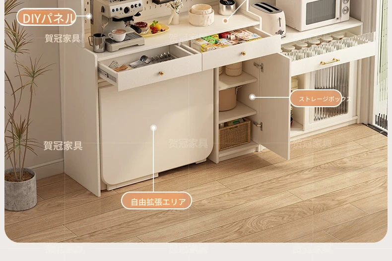 クリームカラーの食卓&サイドキャビネット一体型 2025年新作!モダンでシンプルなデザインのテーブル&4脚チェアのコンビネーション。小型住宅にもぴったりな折りたたみ式。おしゃれな空間を演出します!