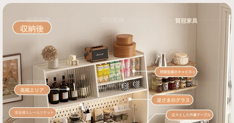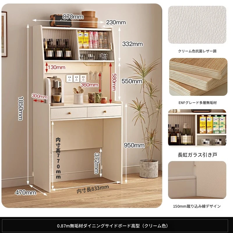 0.87メートル無垢材サイドボードハイボード【五防抗菌肌感ホワイト】