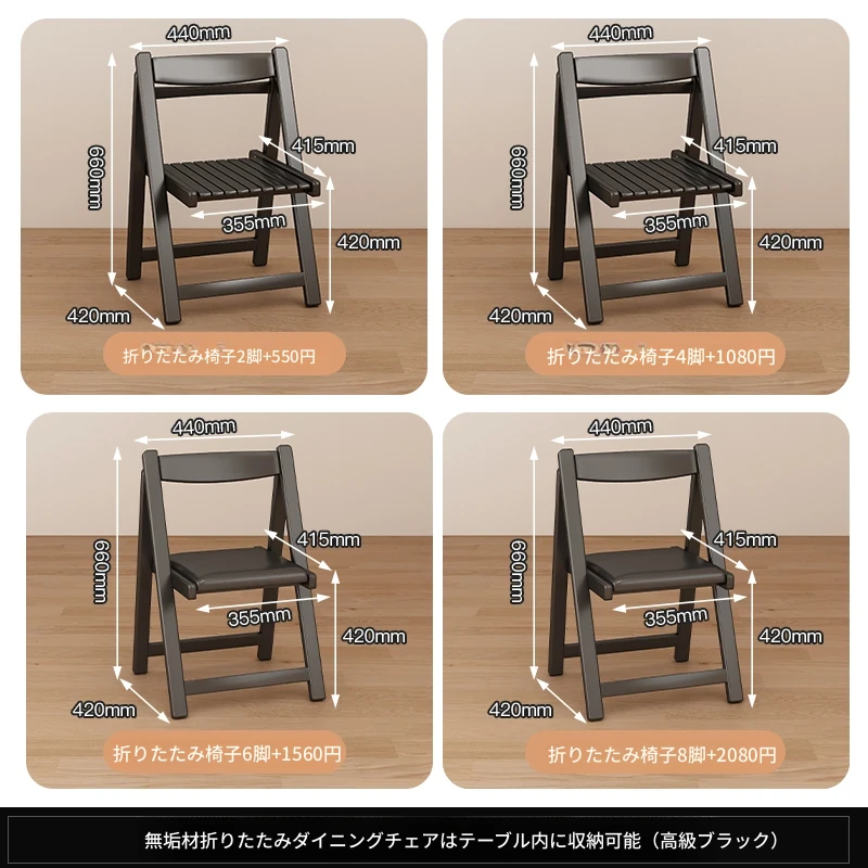 カスタマーサービスに問い合わせて、ダイニングチェアの数量を選択してください【無垢材折りたたみ+高級ブラック】