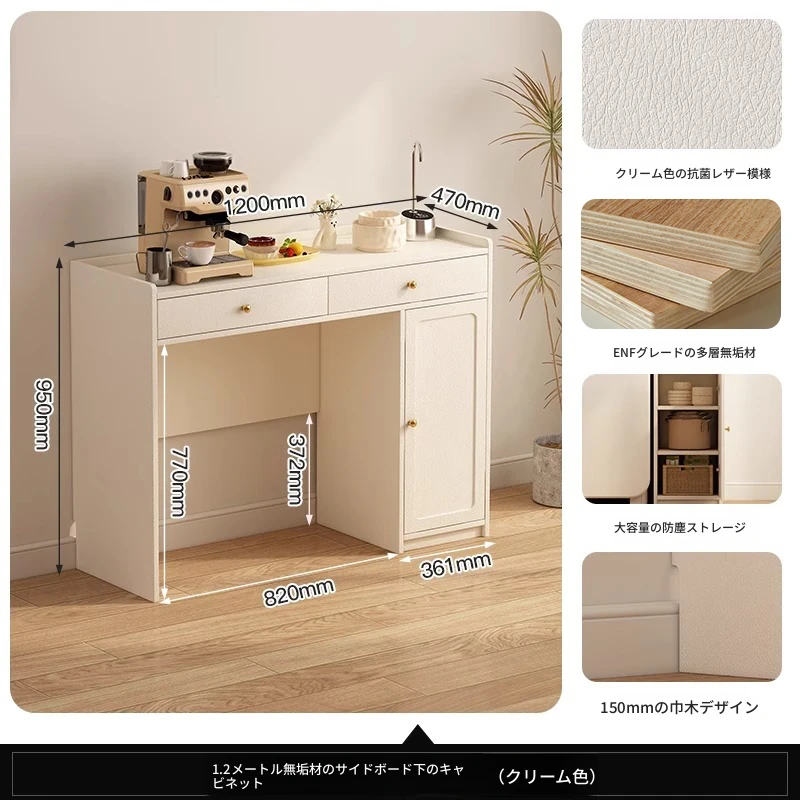 1.20メートル無垢材サイドボード下部【五防抗菌肌感ホワイト】