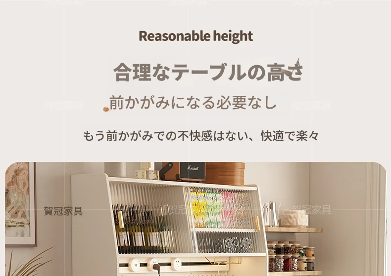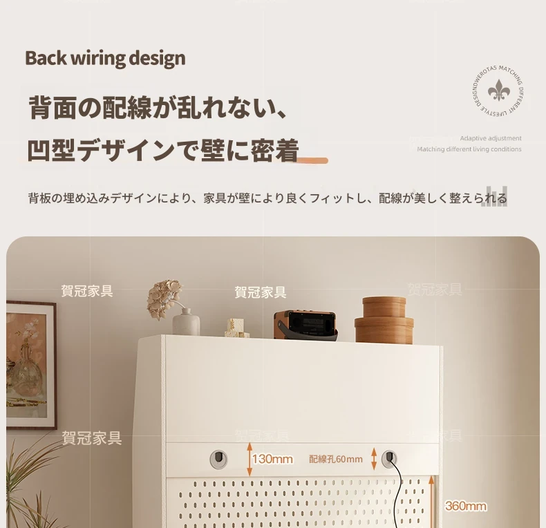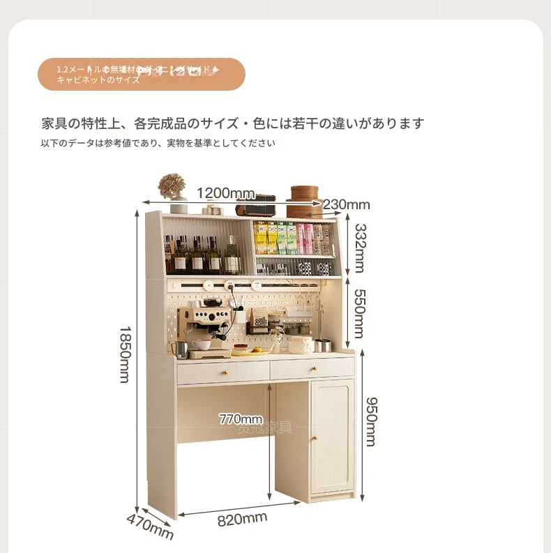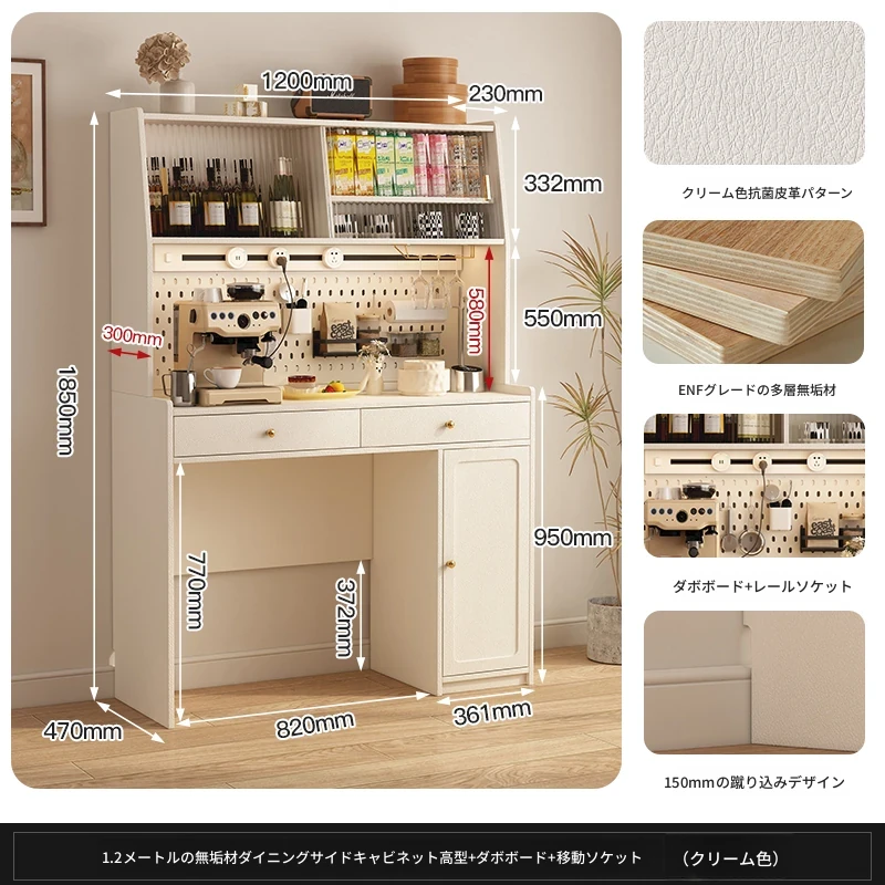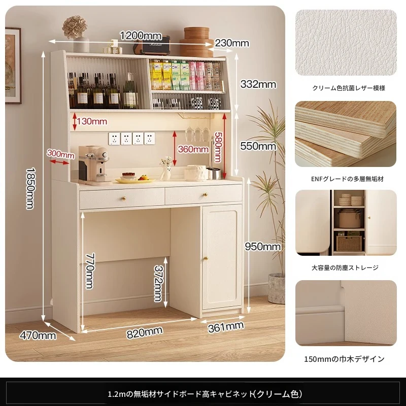 1.2メートル無垢材サイドボードハイボード+ディストレーションボード+モバイル電源タップ【五防抗菌肌感ホワイト】