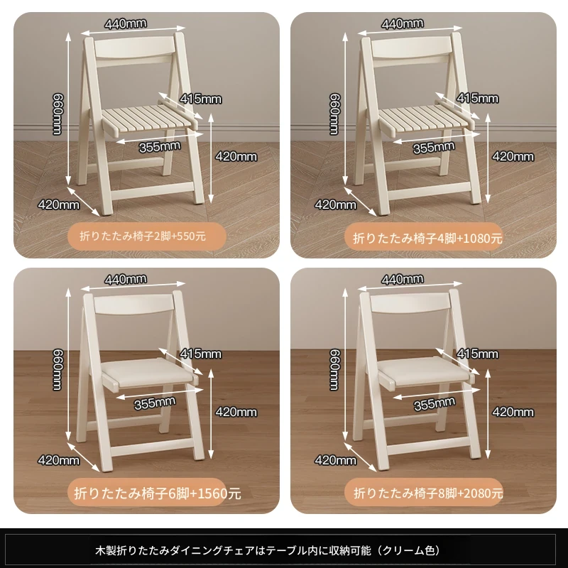 カスタマーサービスに問い合わせて、ダイニングチェアの数量を選択してください【無垢材折りたたみ+クリームホワイト】