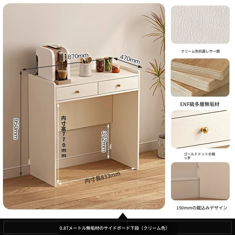0.87メートル無垢材サイドボード下部【五防抗菌肌感ホワイト】
