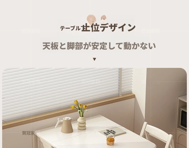 1.7メートル無垢岩板折りたたみダイニングテーブル【五防抗菌肌感ホワイト】+電磁調理器