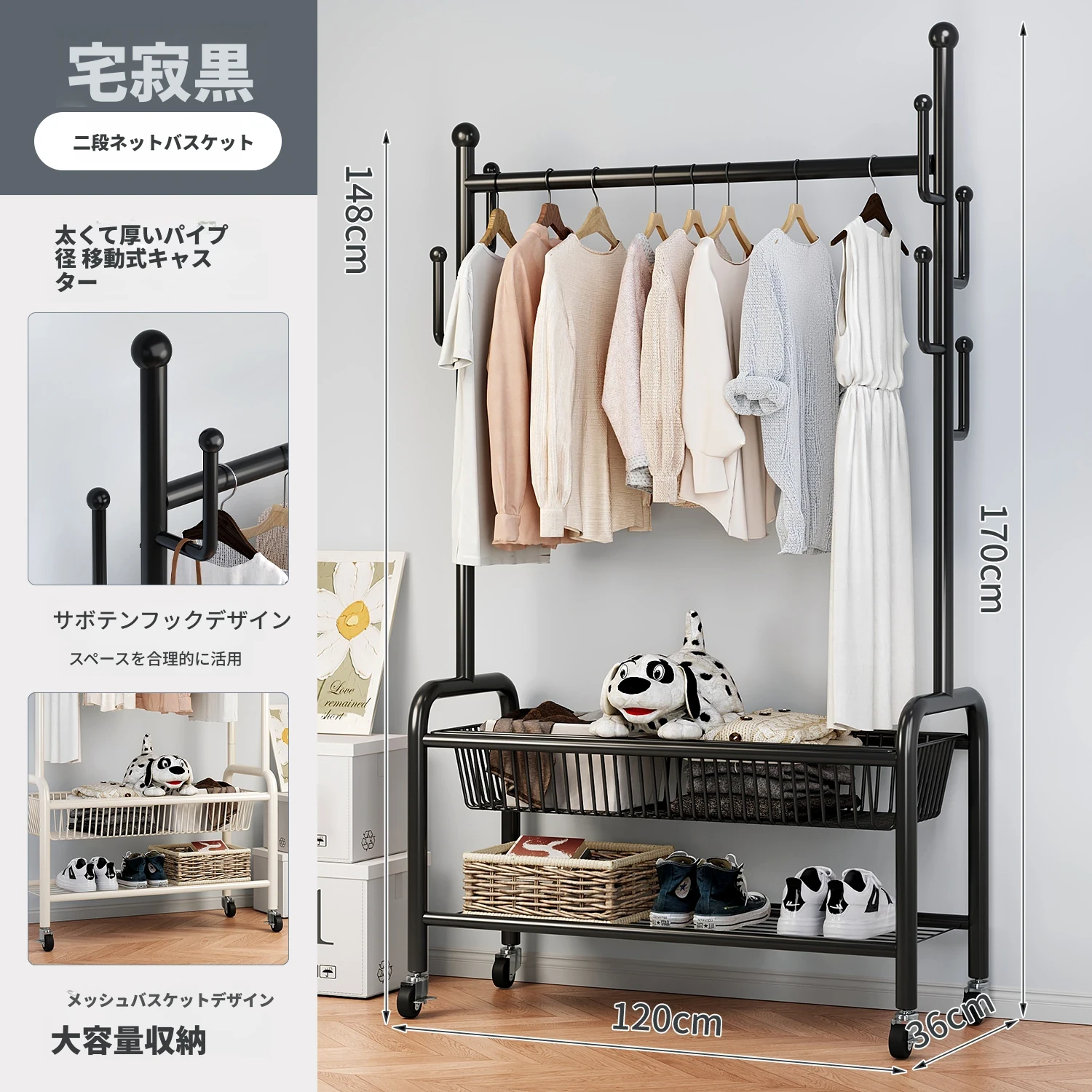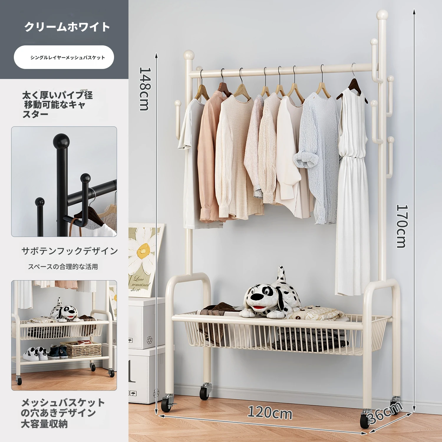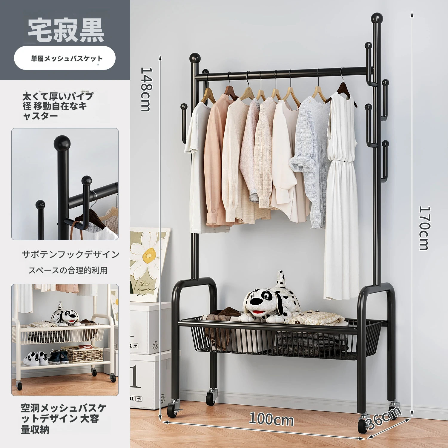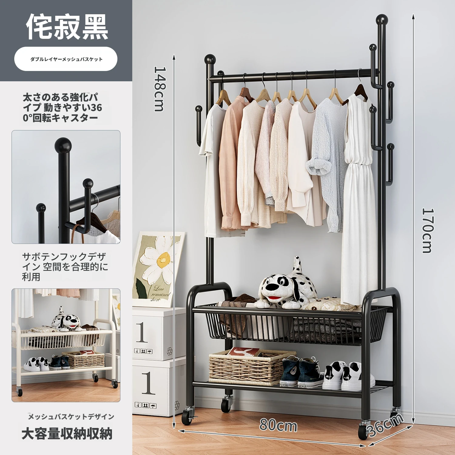 簡単移動式コートハンガー|家庭・寮用・バルコニー・寝室向け!衣類を美しく収納できる衣服干しラック【スマート収納でスペース節約】