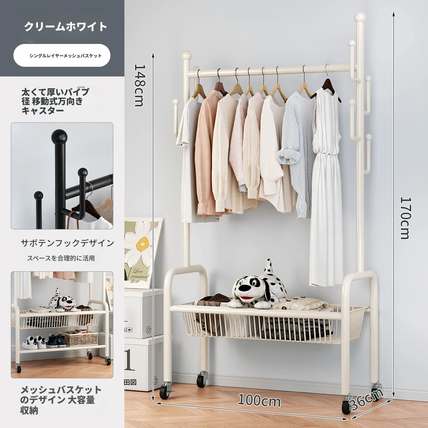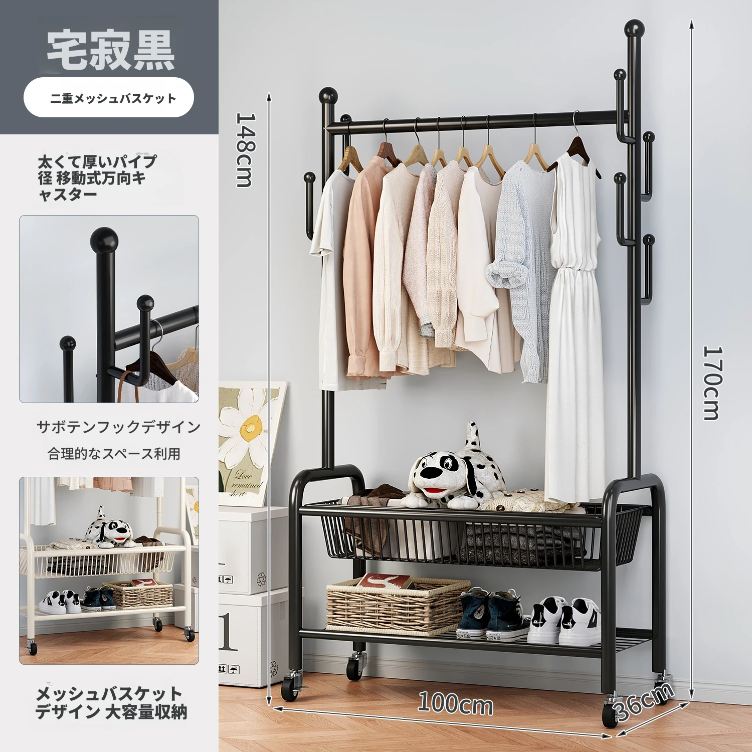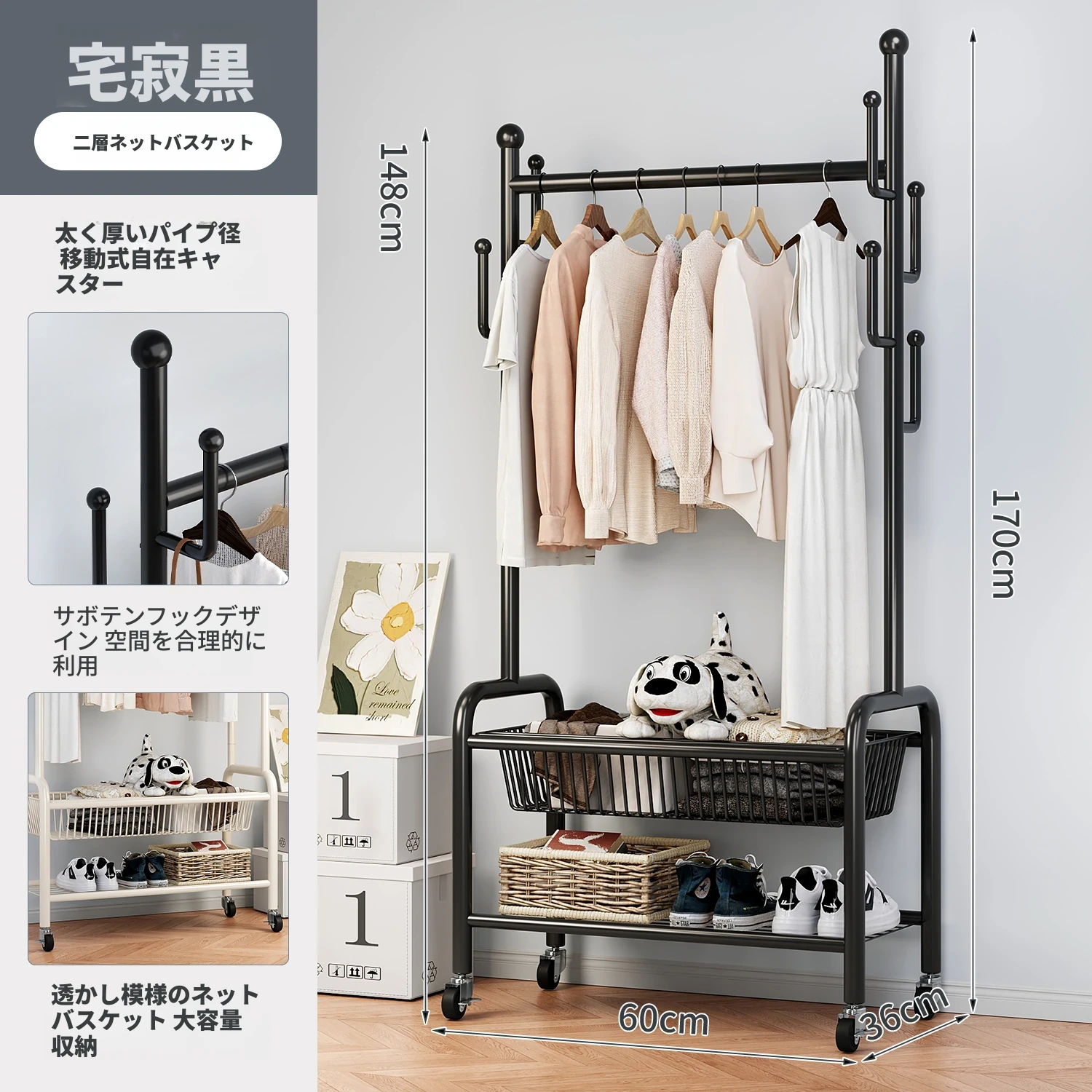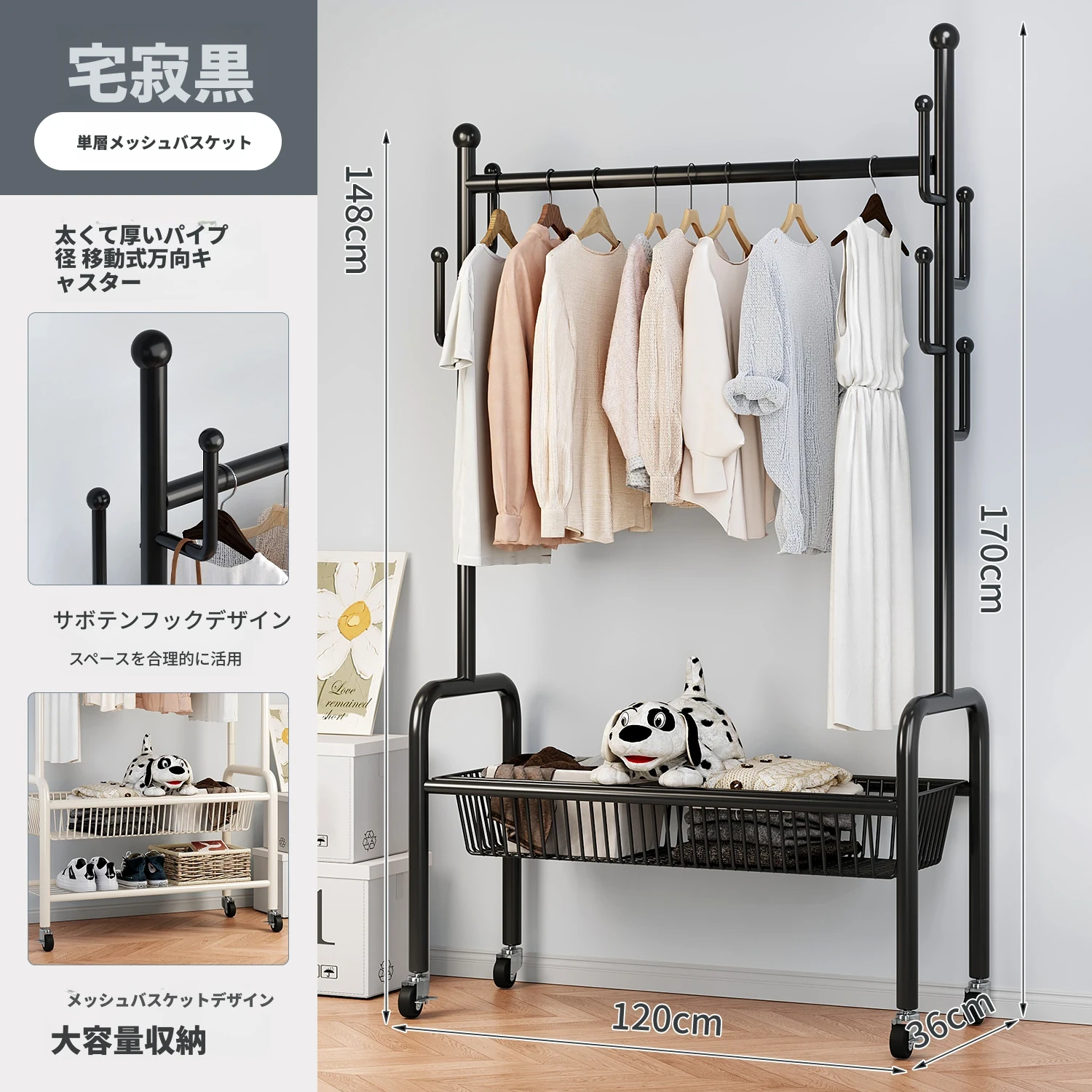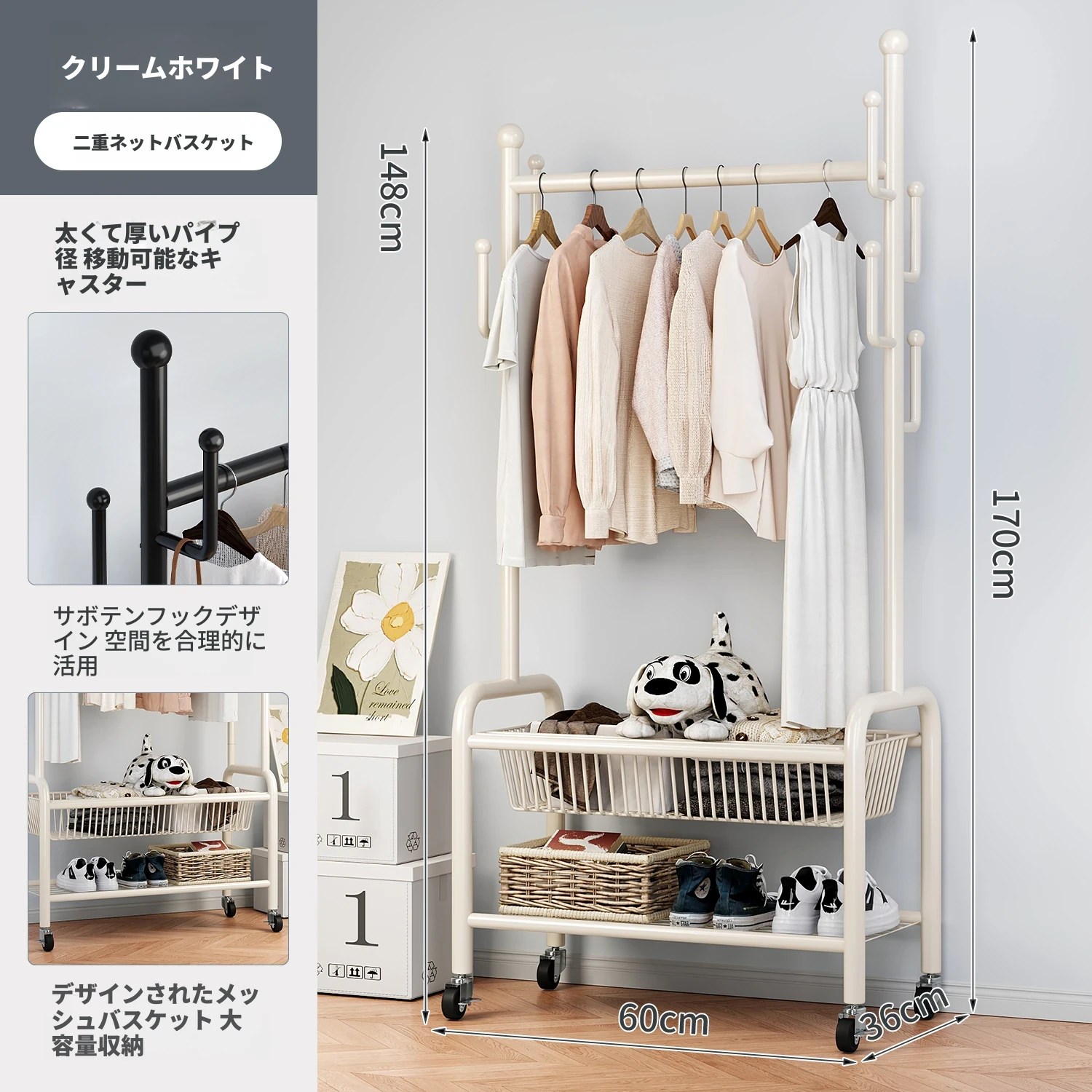 簡単移動式コートハンガー|家庭・寮用・バルコニー・寝室向け!衣類を美しく収納できる衣服干しラック【スマート収納でスペース節約】